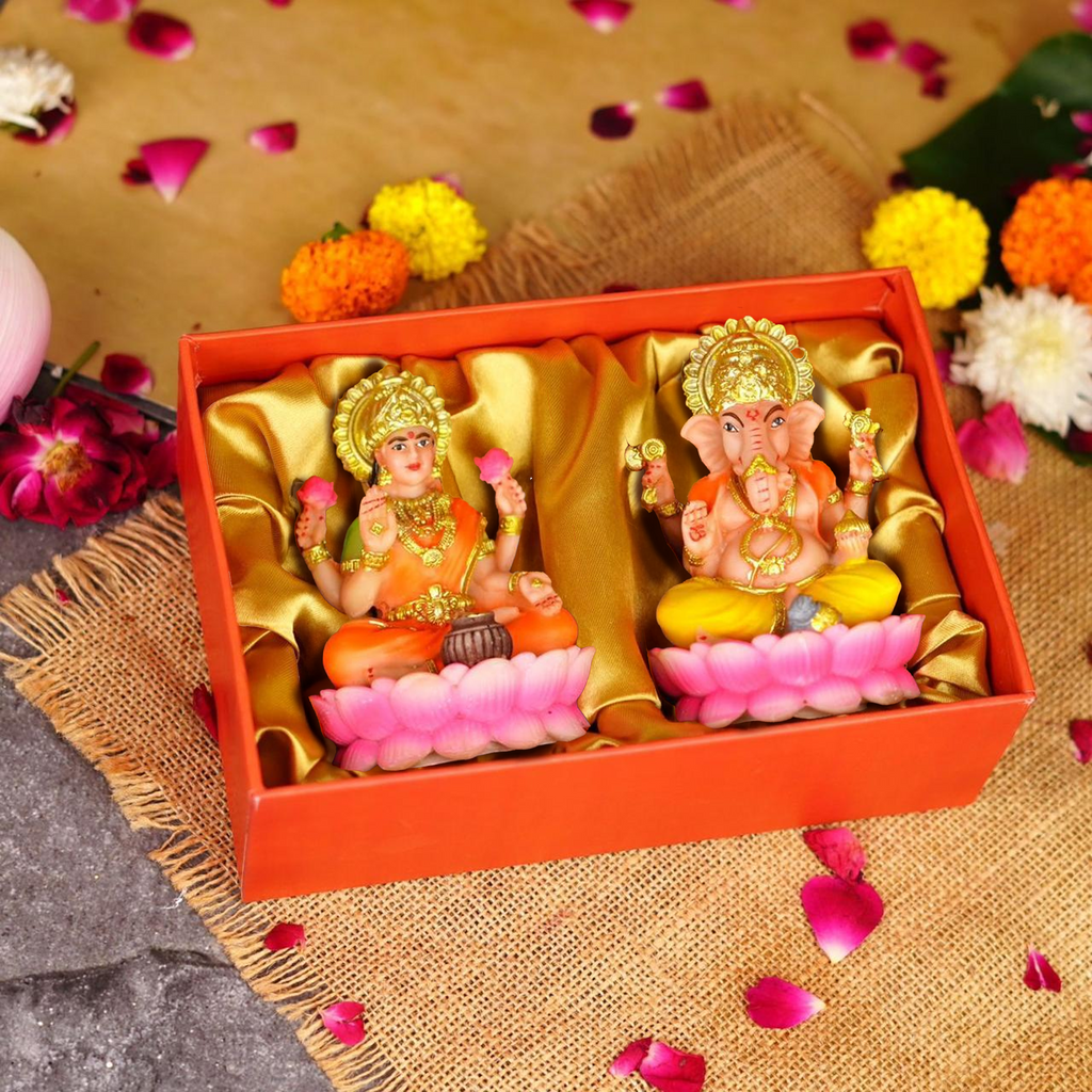 Pink Lotus Lakshmi Ganesh Resin Idol 4 Inch
