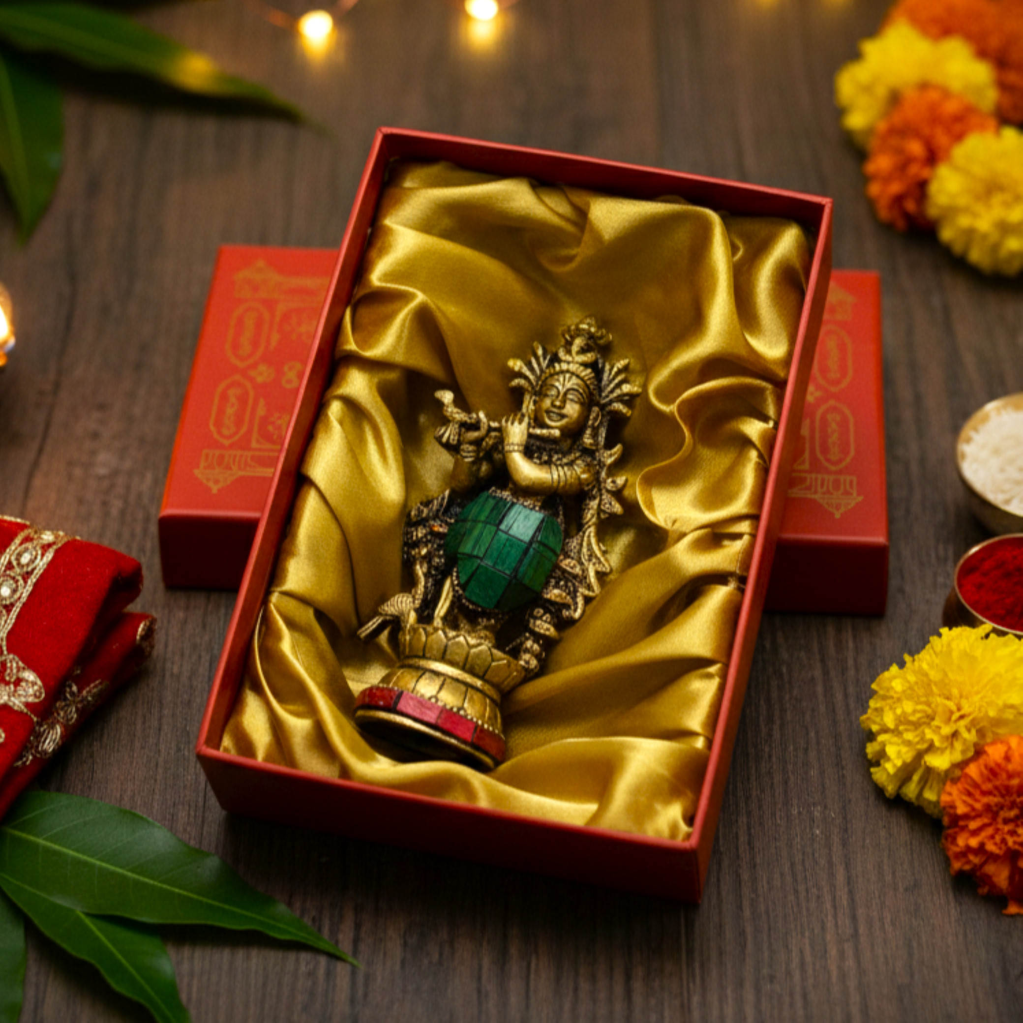 The statue is made from high-quality material, ensuring durability and a polished finish. Placing this idol in your home is believed to bring harmony, love and spiritual inspiration, making it a cherished gift for devotees and collectors alike.