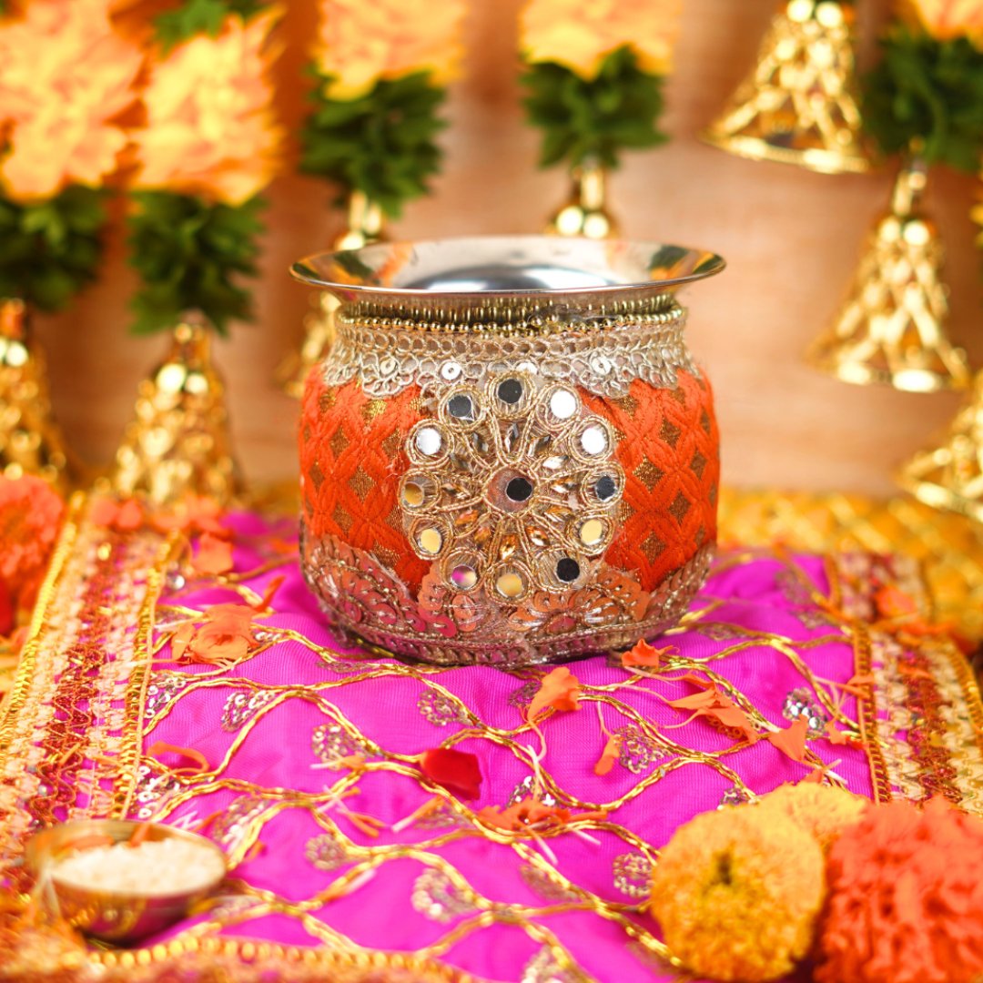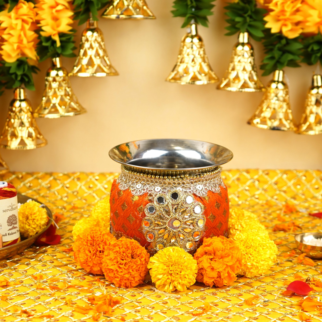 Decorated Orange Pooja and Rituals Lota 4 inch