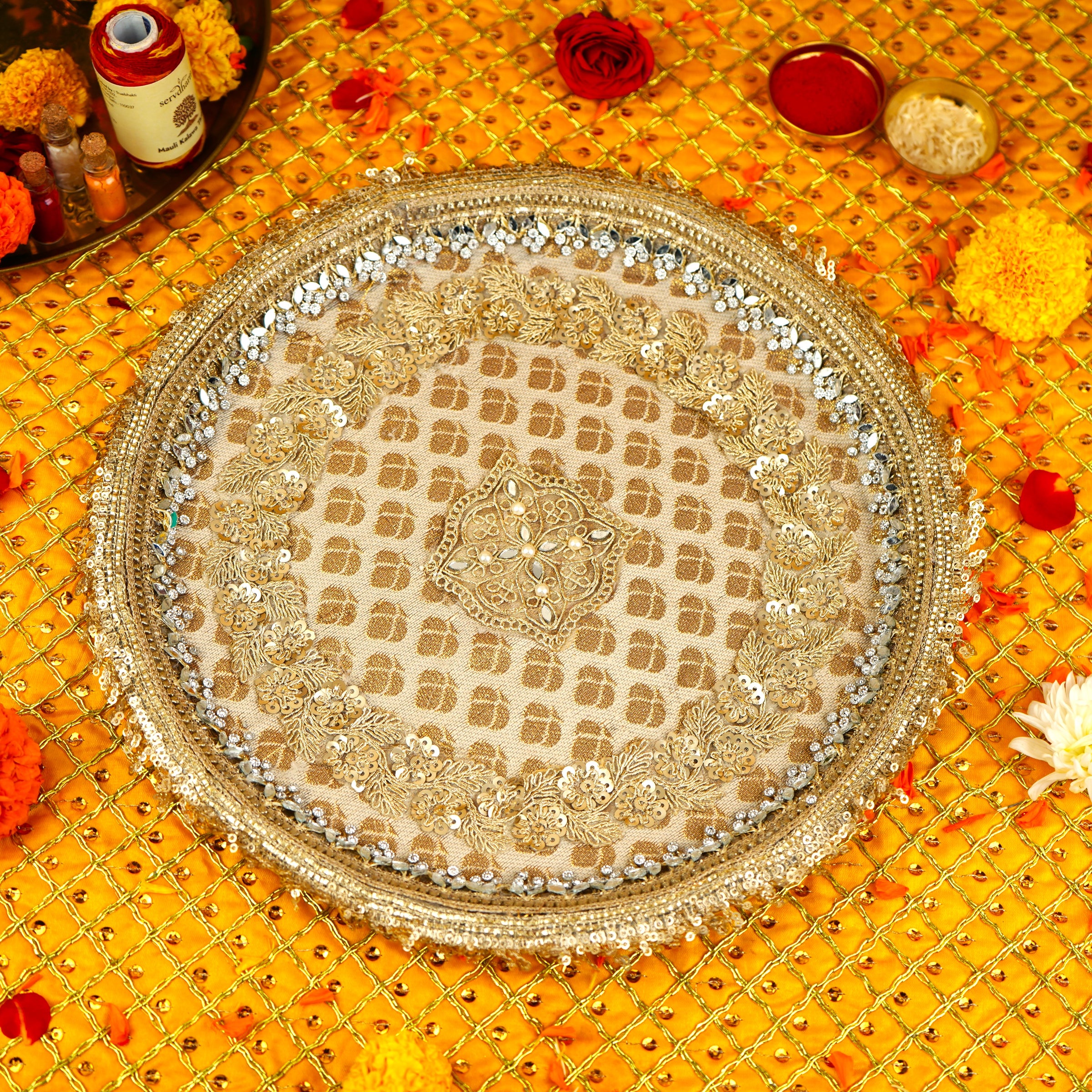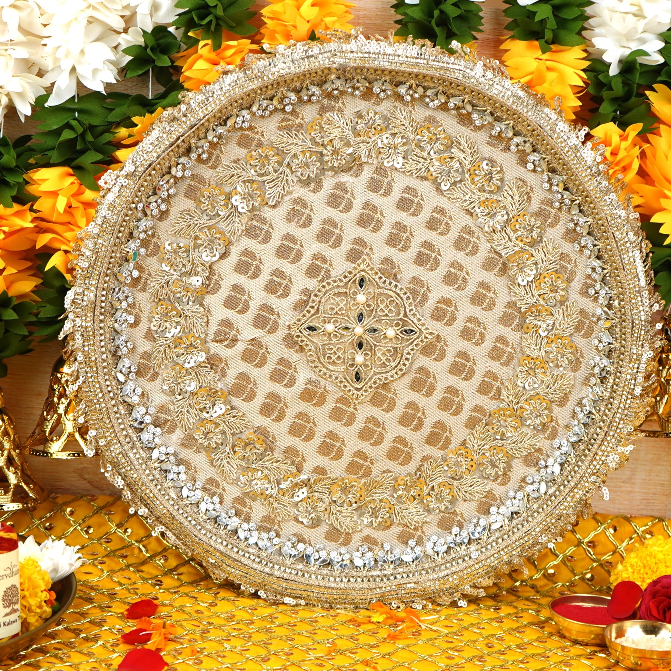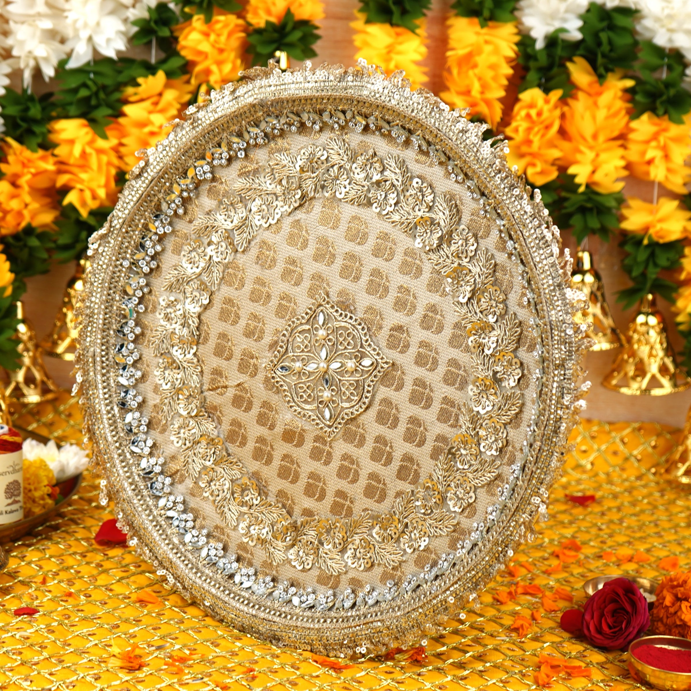 Golden Embellished Pooja Thali | Shagun Thali 11.5 inch