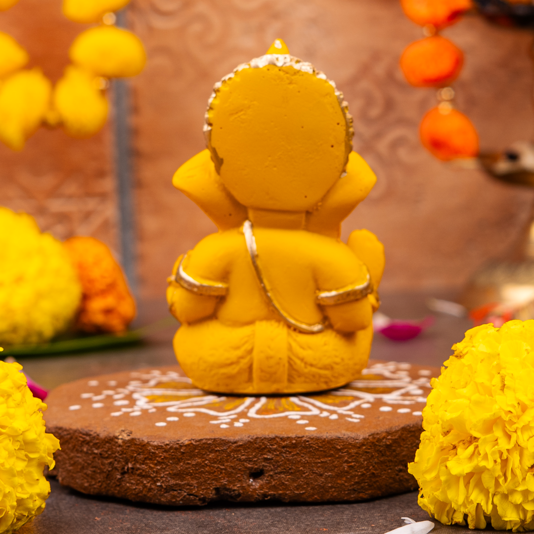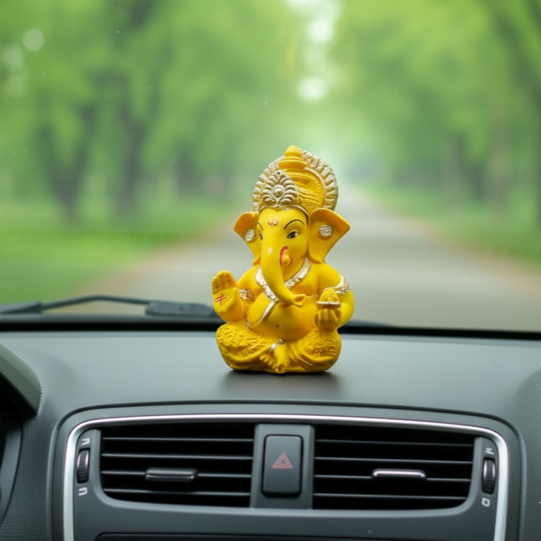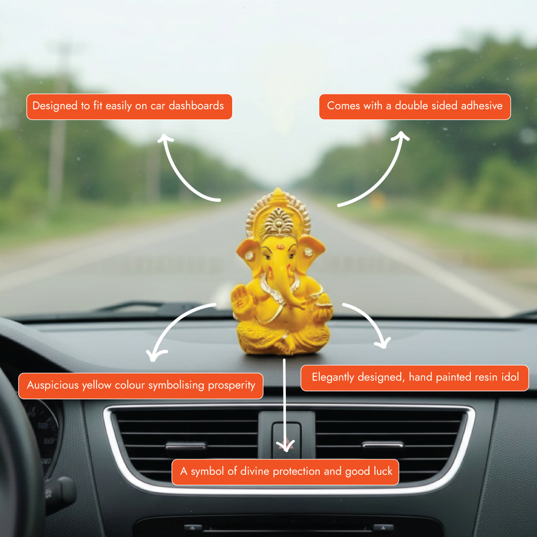 Haldi-toned Yellow Ganesha Resin Car Dashboard Idol 3.5"
