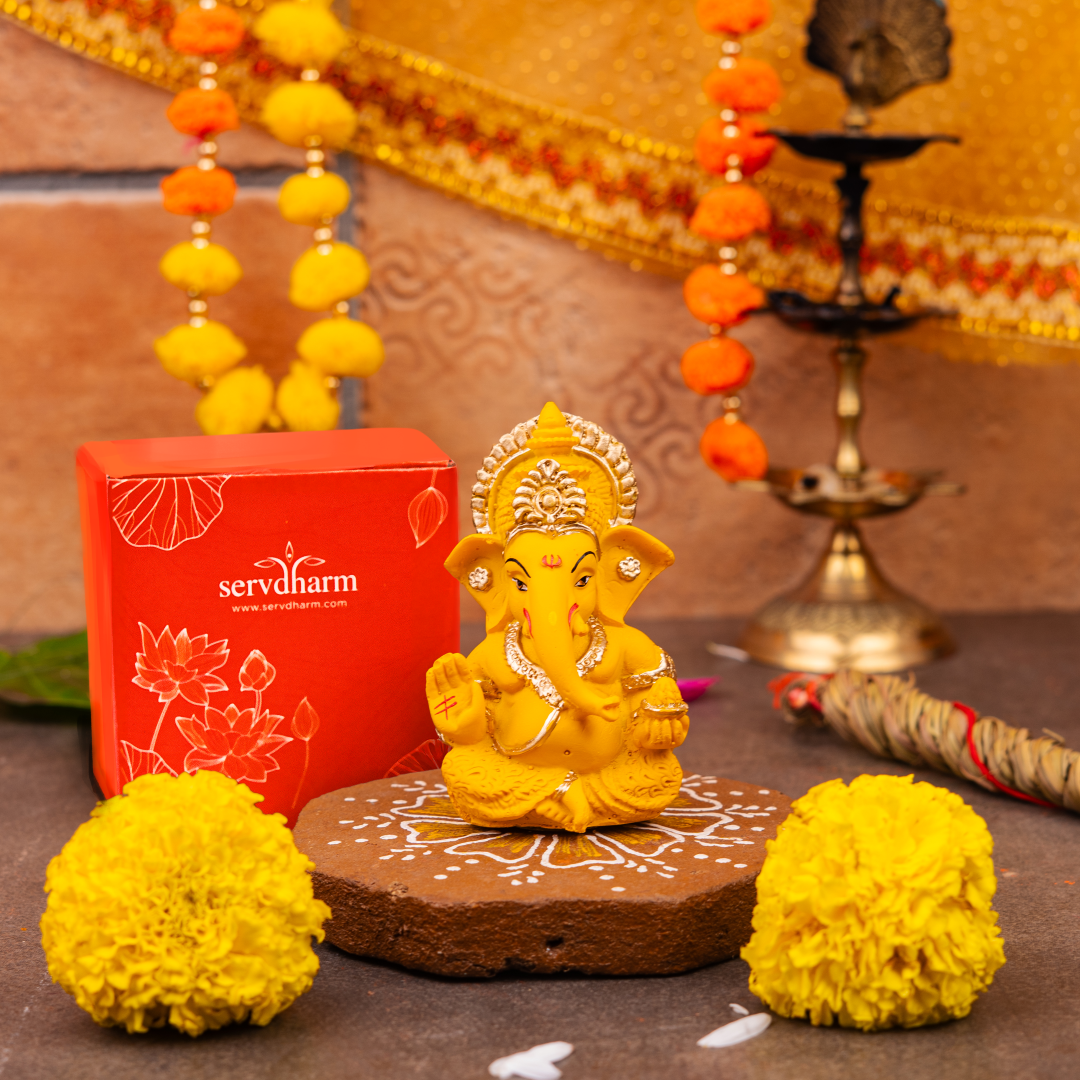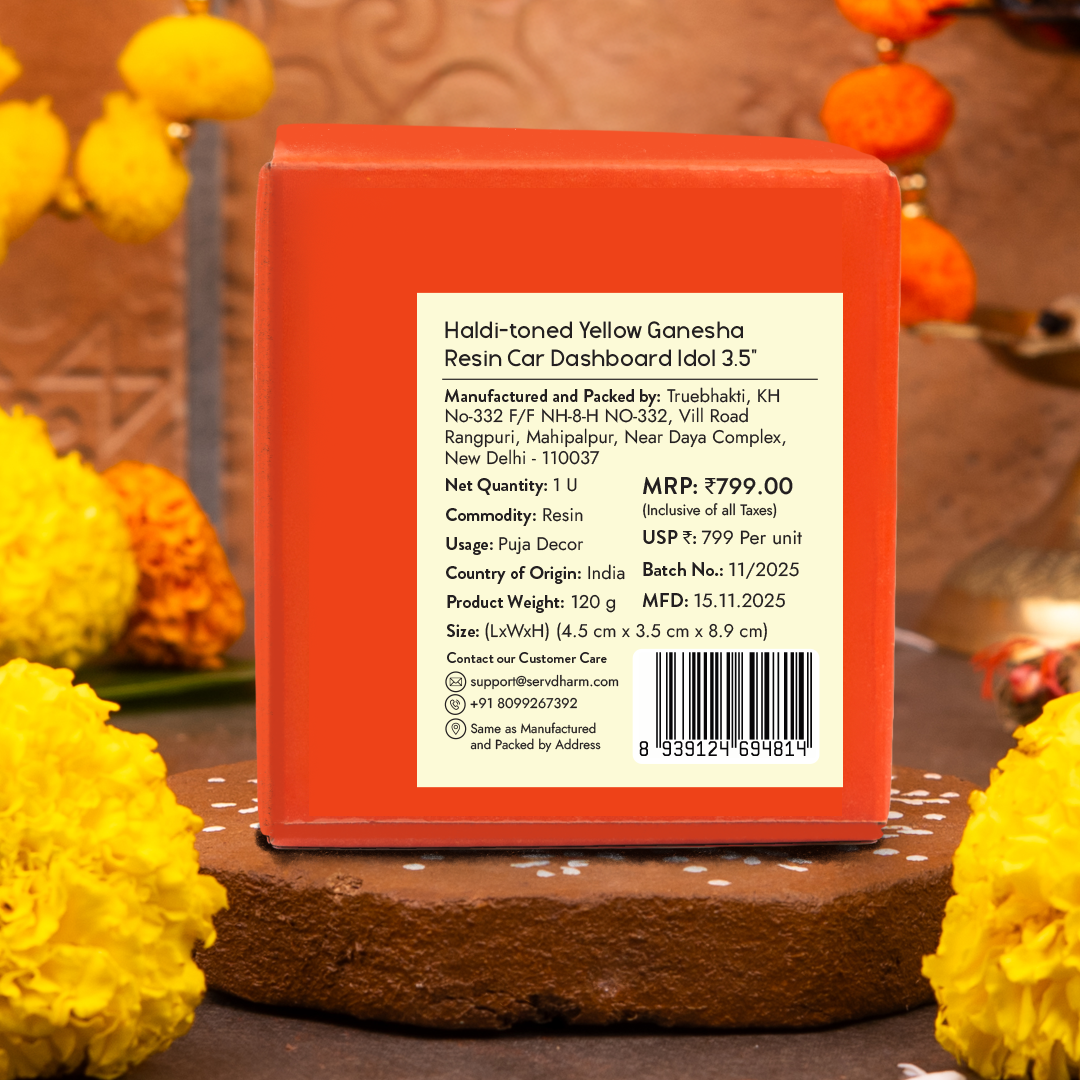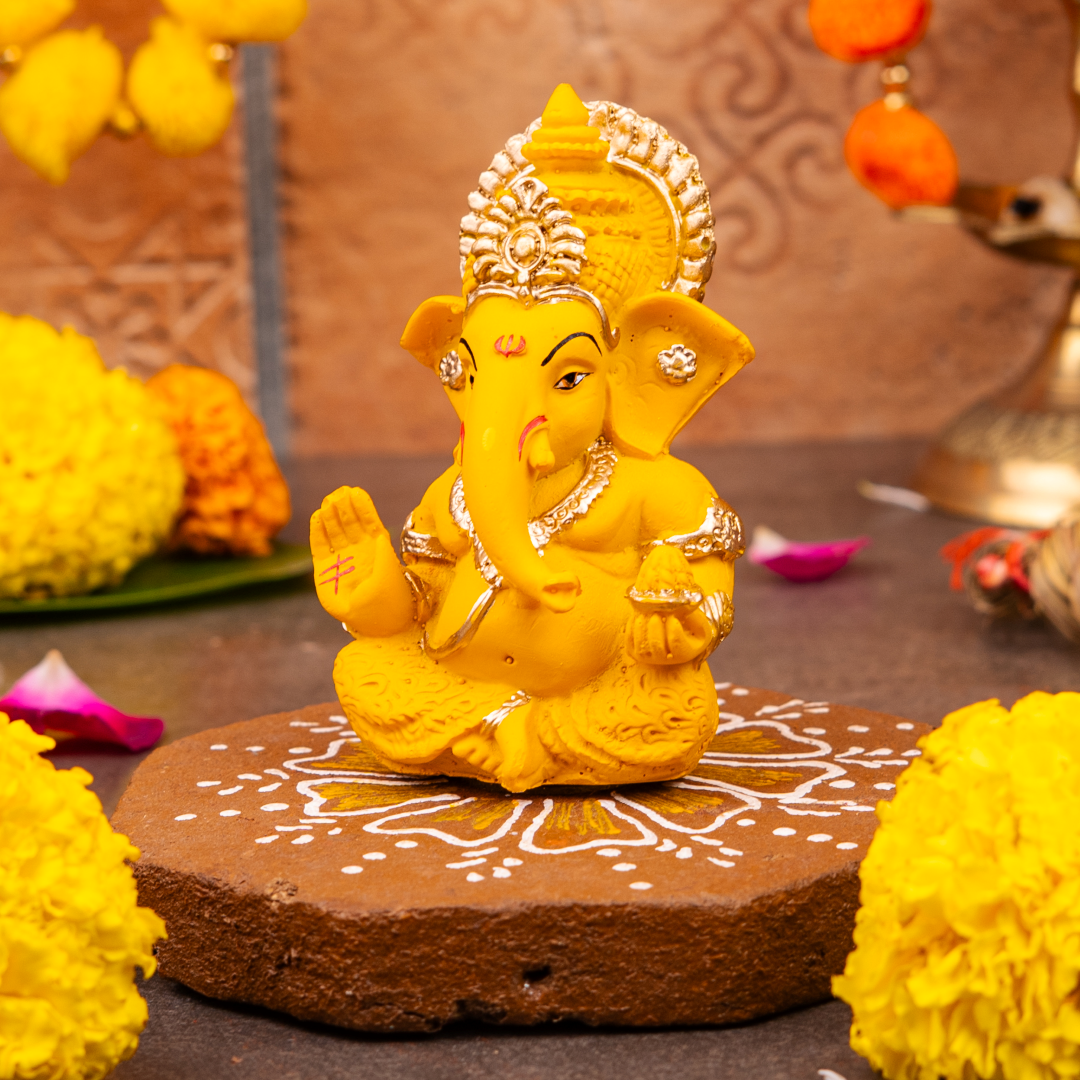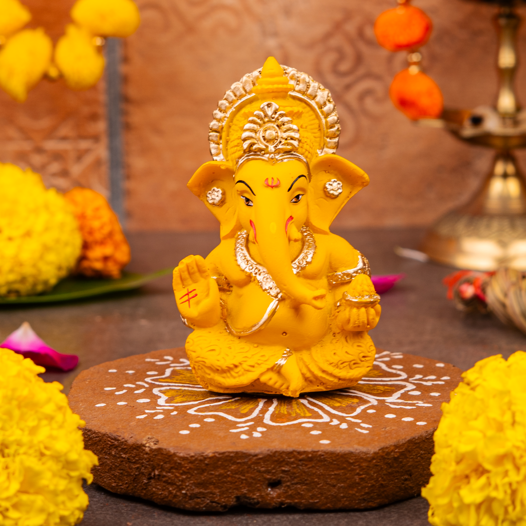 Haldi-toned Yellow Ganesha Resin Car Dashboard Idol 3.5"