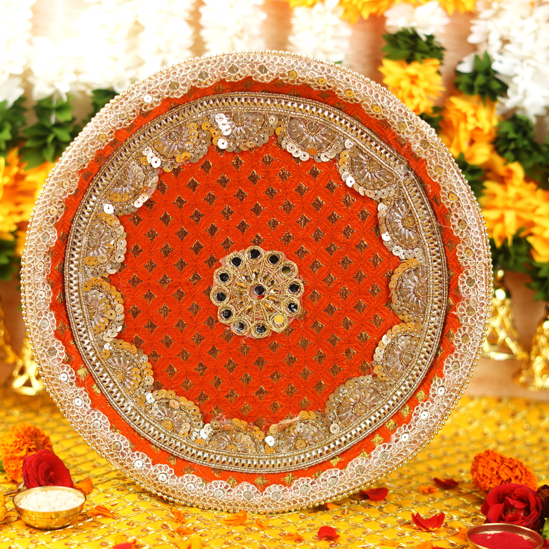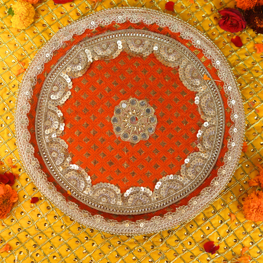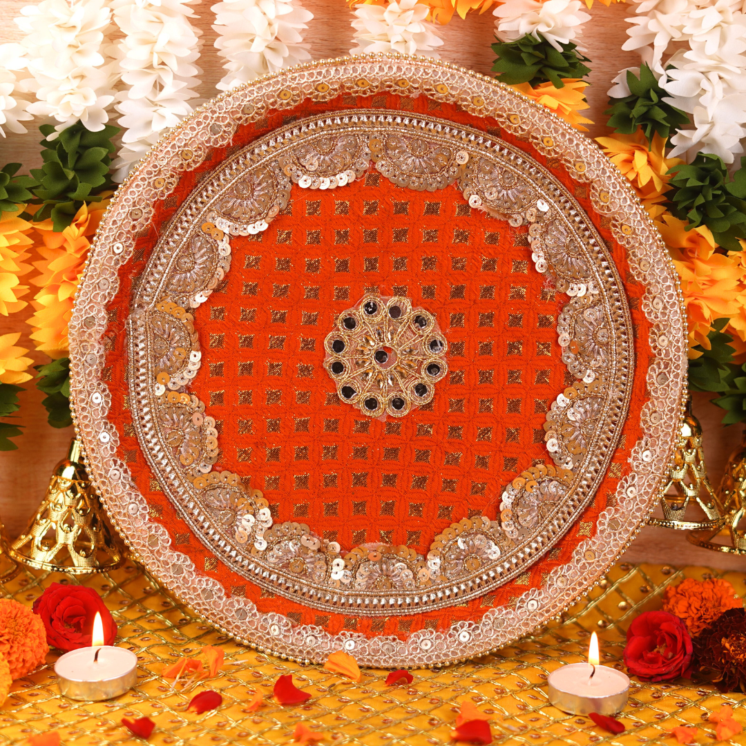 Orange Embellished Pooja Thali | Shagun Thali 11.5 inch