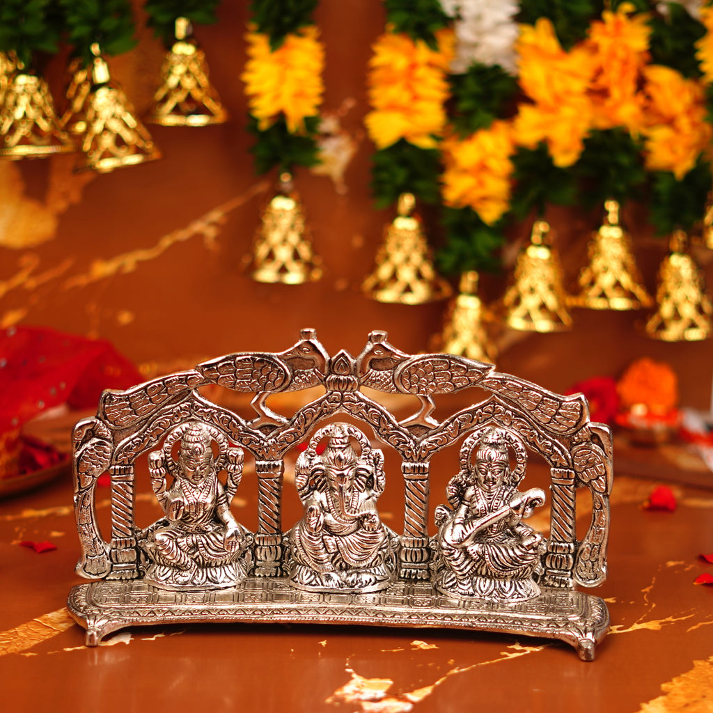 Lakshmi Ganesh Saraswati Silver Plated Idol 5.5 Inch