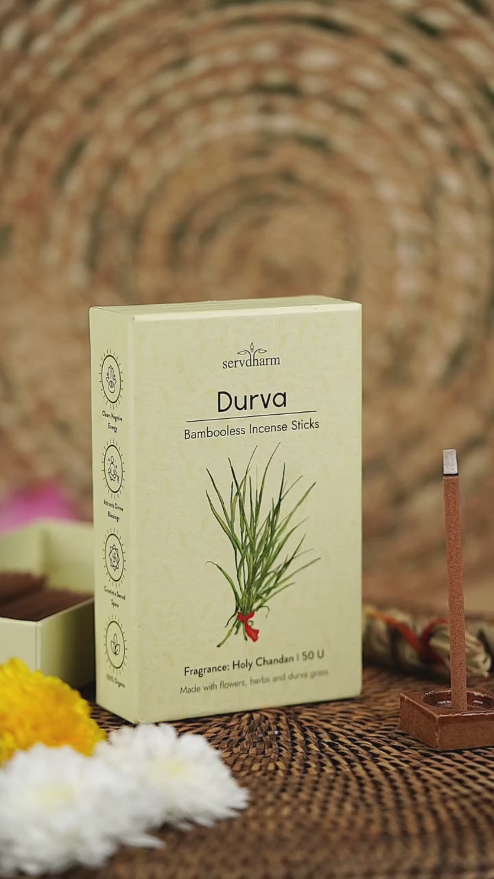 Infused with the authentic fragrance of Holy Chandan, these Durva dhoop stick create a calming and spiritual atmosphere, ideal for meditation, prayer, or relaxation.