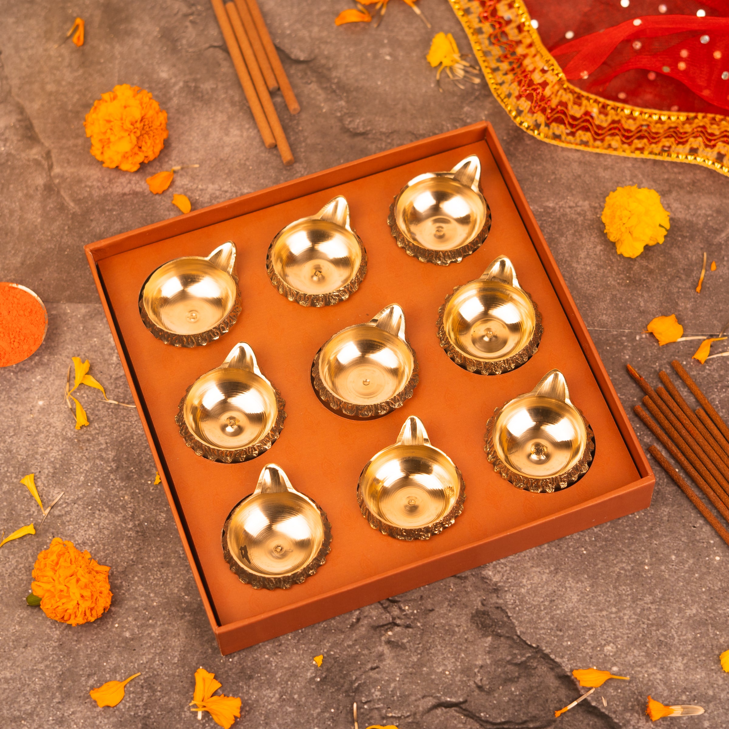 Pure Brass Kuber Diya Gift Set | Set of 9 diyas