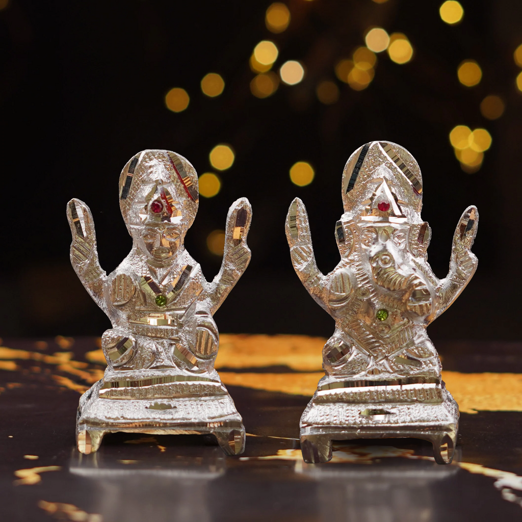 Lakshmi Ganesh Silver Plated Idol Set with Premium Gift Box 4 Inch