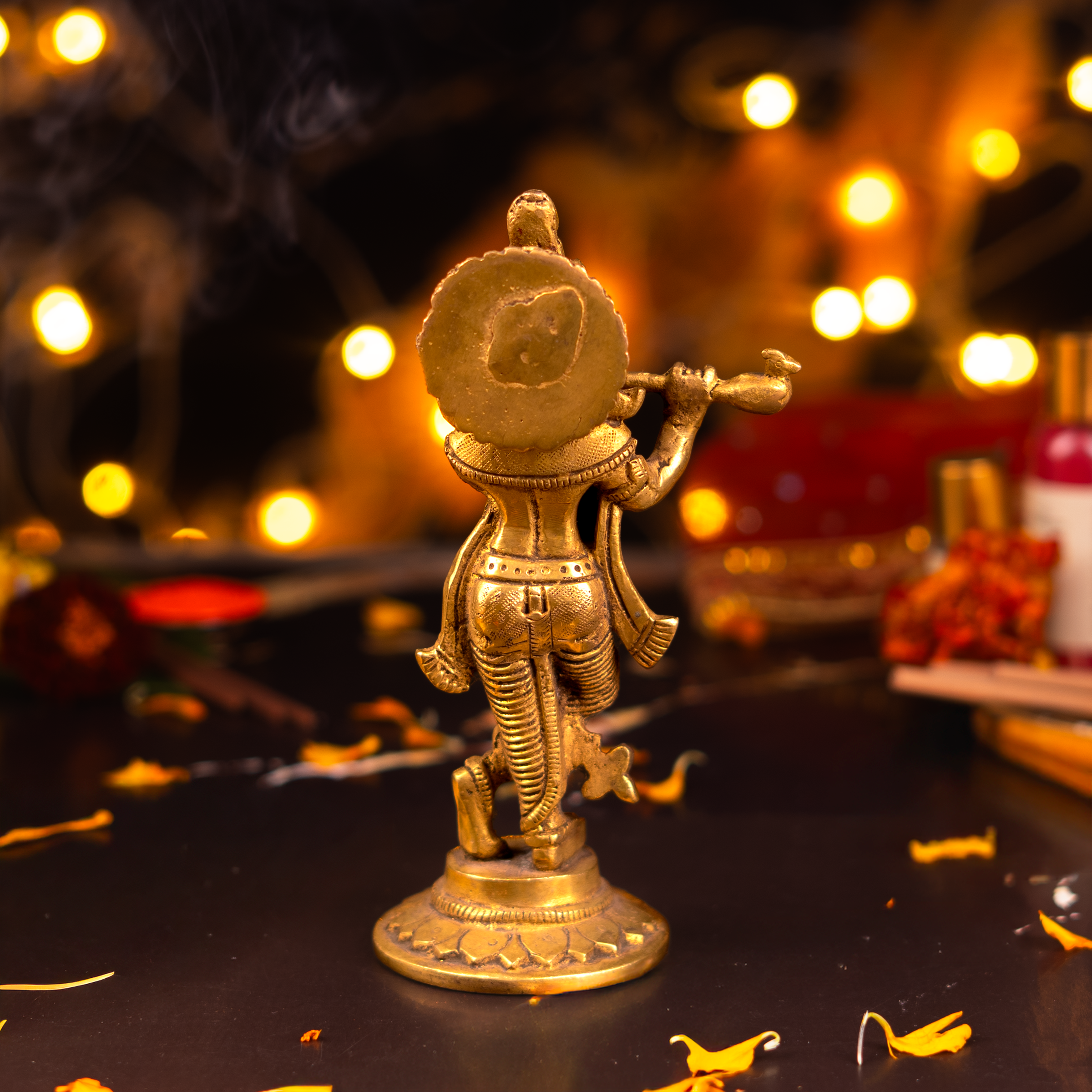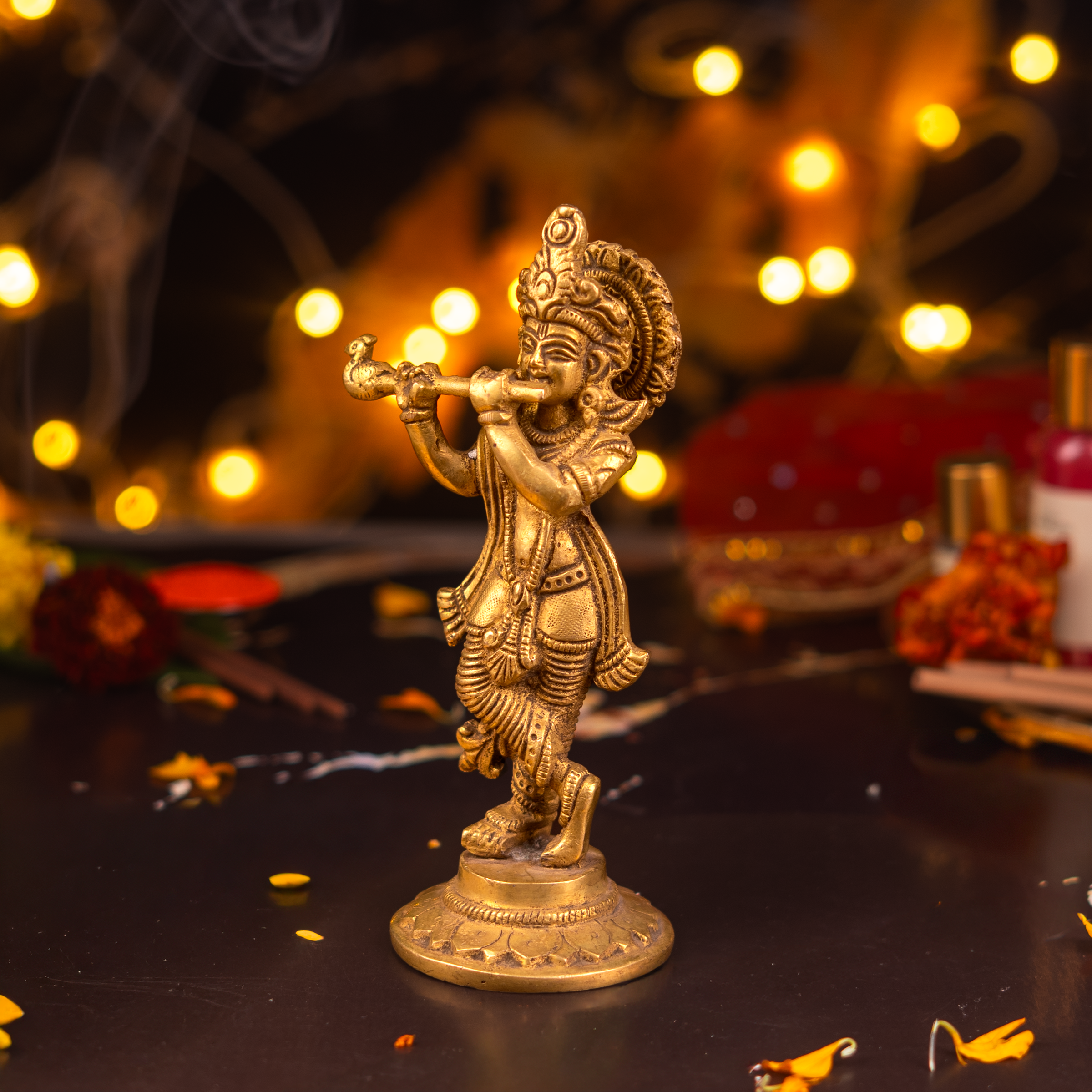 Brass Lord Krishna Statue Playing Flute 7 Inch | 730 g