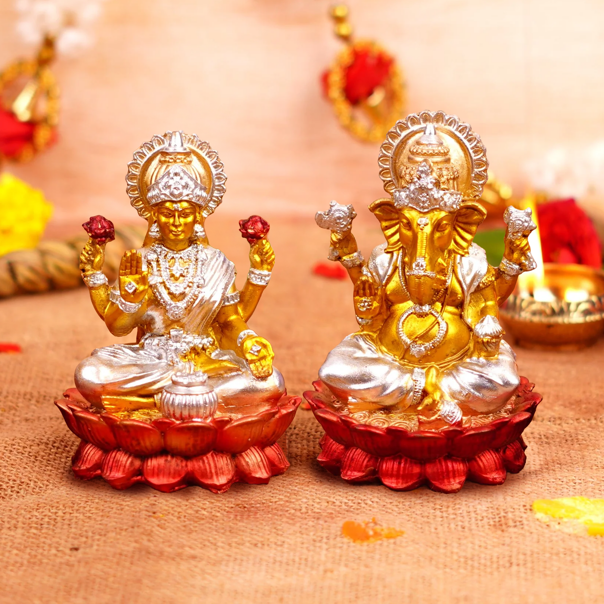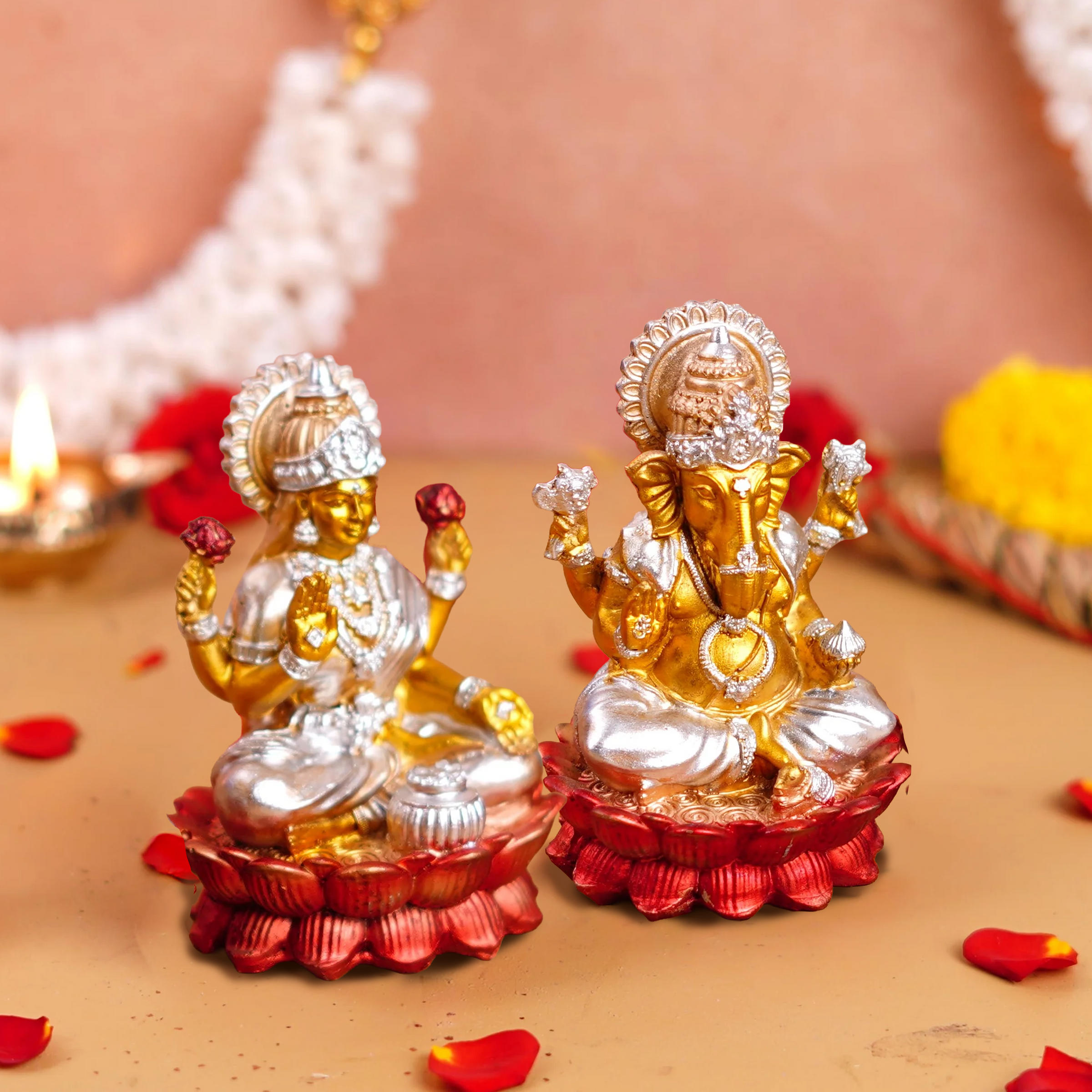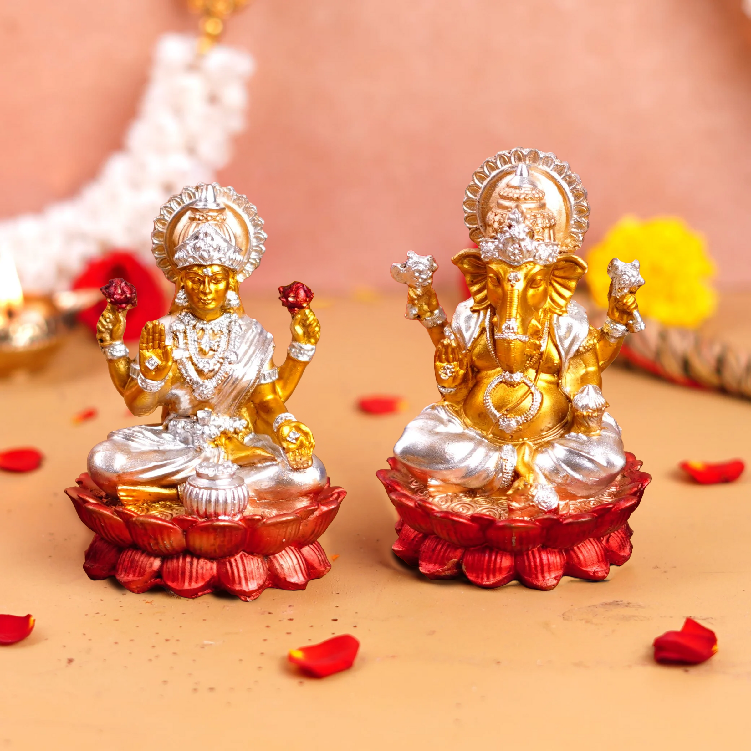 Silver and Golden Lakshmi Ganesh Resin Idol 4"