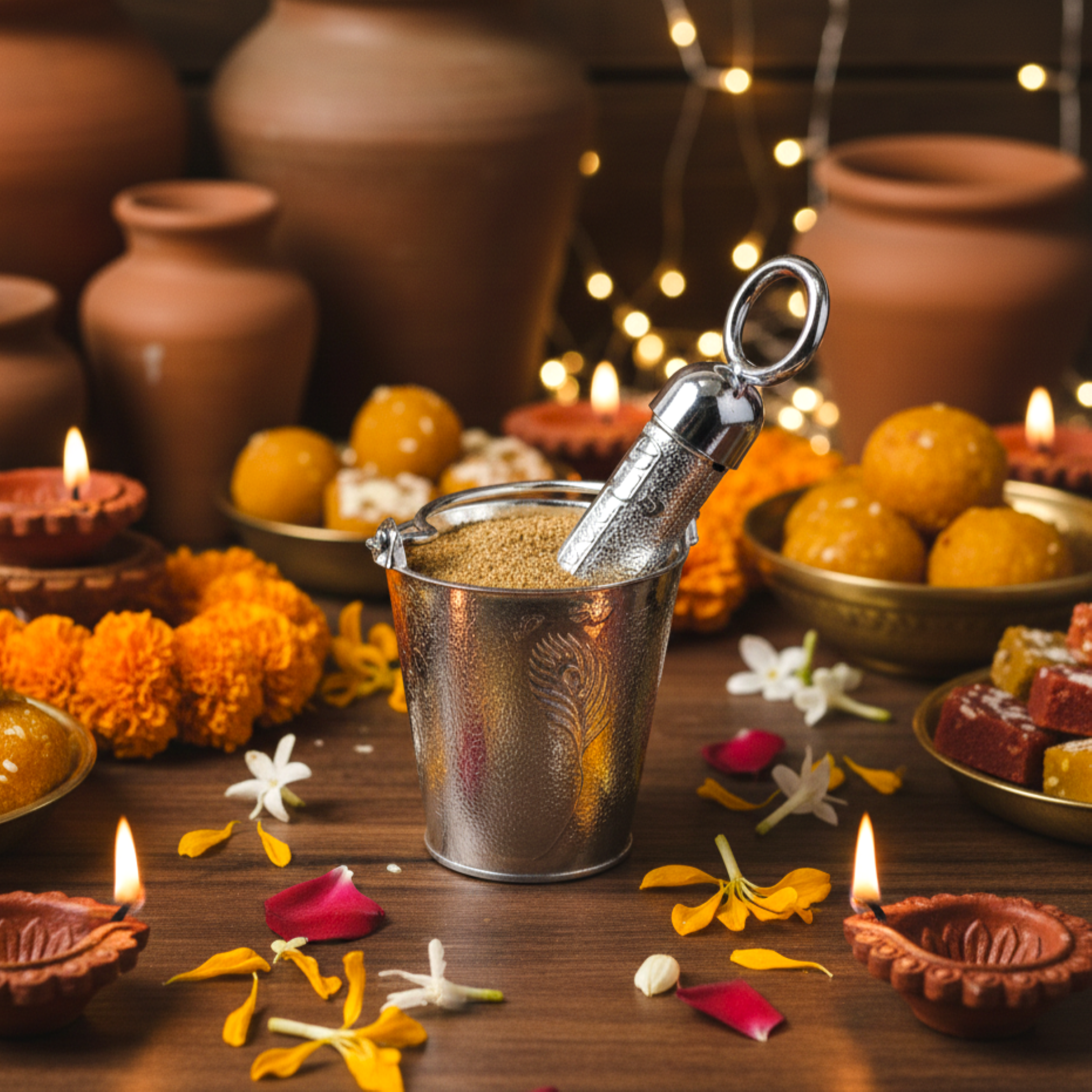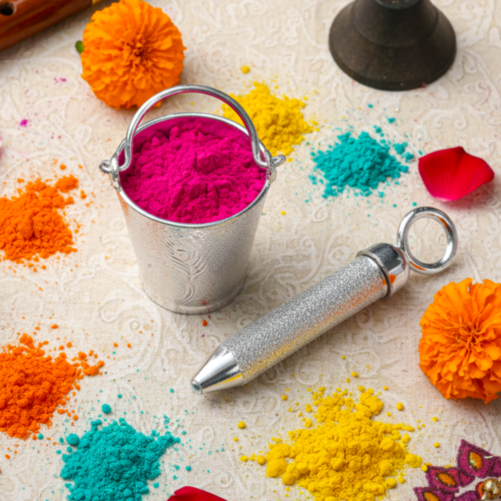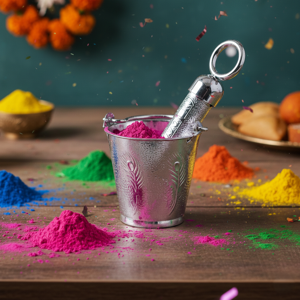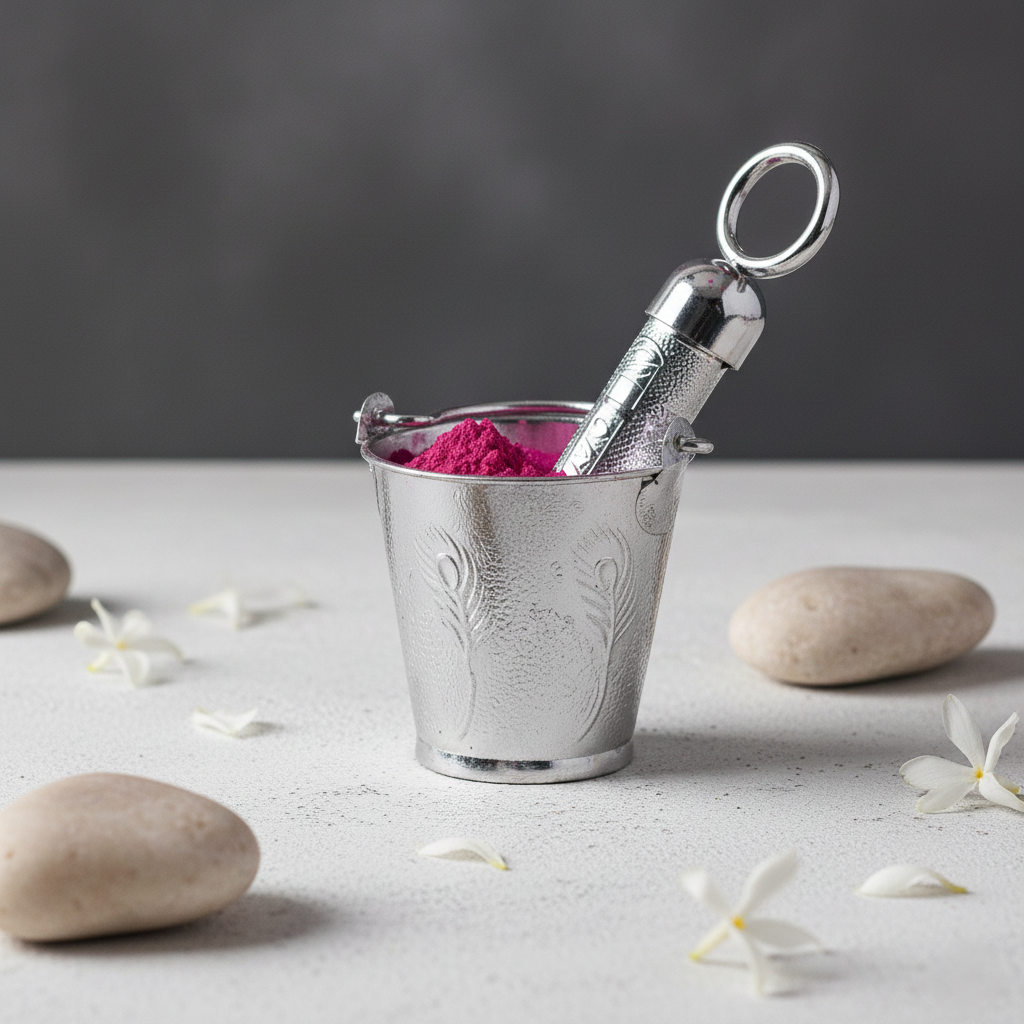 Silver Coloured Holi Mini Balti and Pichkari For Gifting