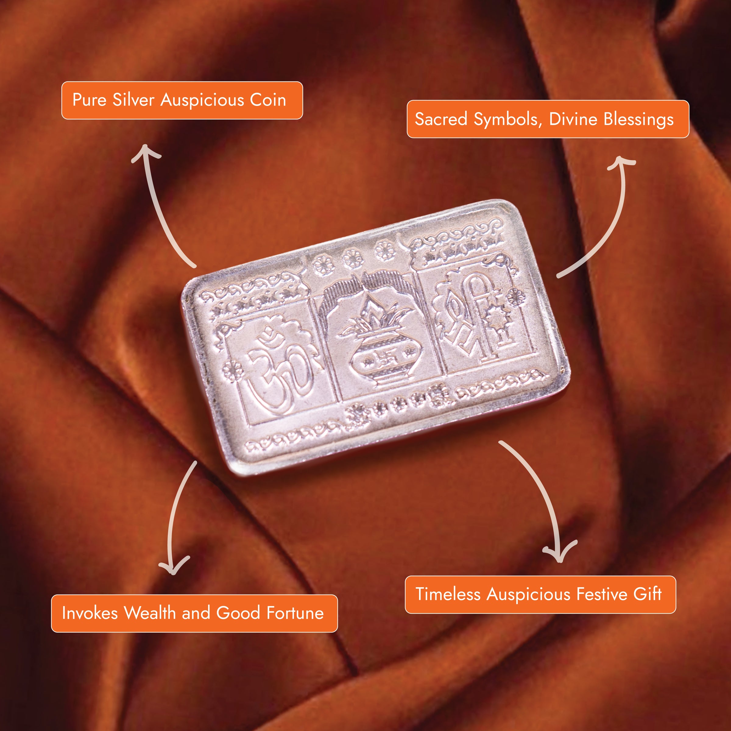 This auspicious silver bar can be placed in home temples, office desks, lockers, cash drawers, pooja trays, and personal altars. It is useful for individuals who follow traditional Lakshmi-Ganesha worship during financial decisions, business setups, festival rituals, or daily sadhana. The compact rectangular format allows it to fit neatly in wallets, travel kits, or gifting envelopes.