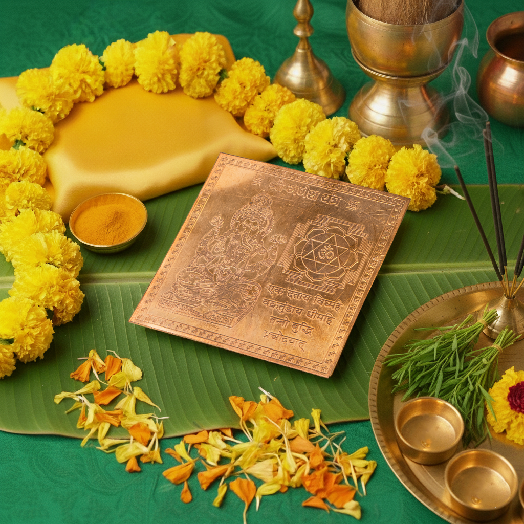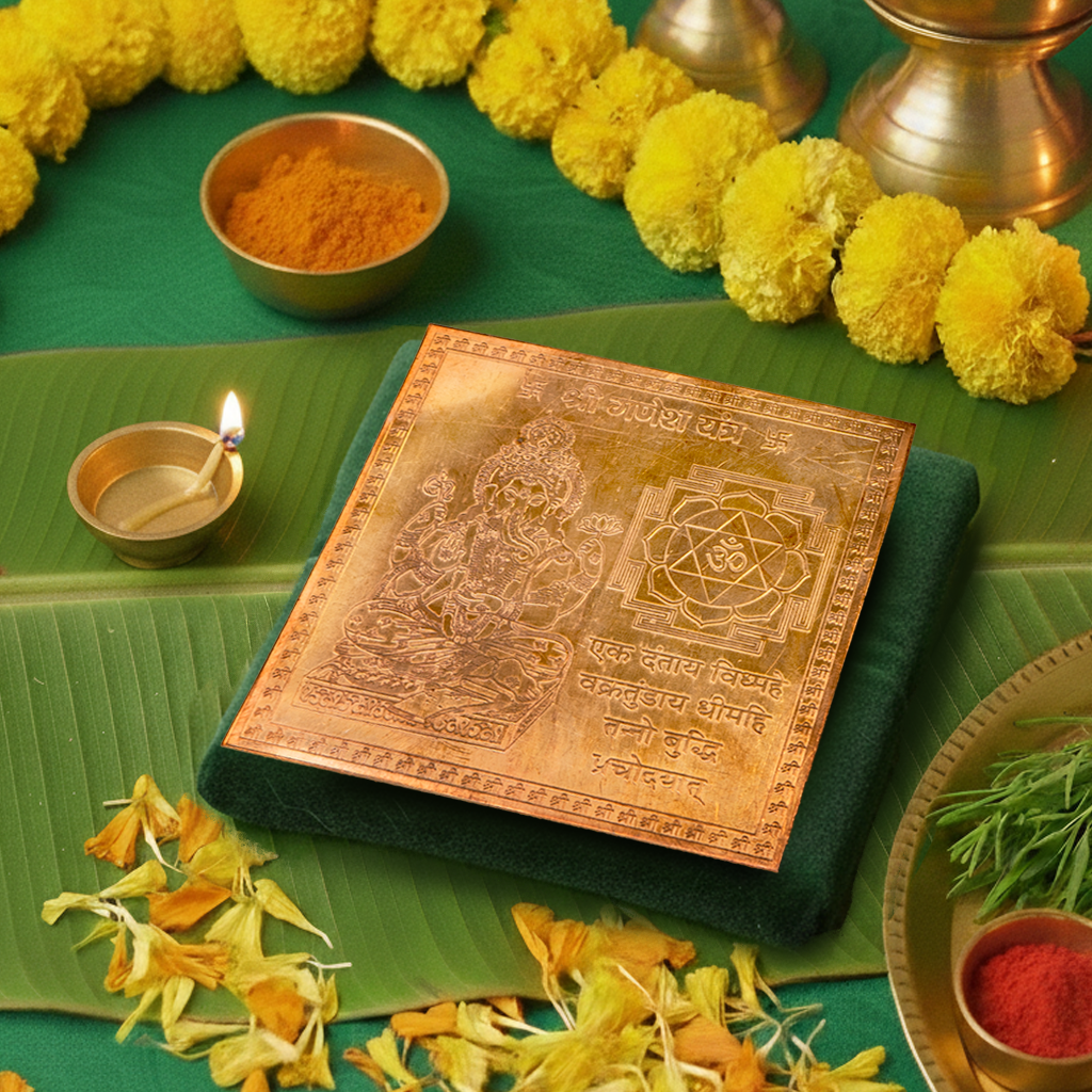 Copper Shri Ganesh Yantra 4 x 4 inch