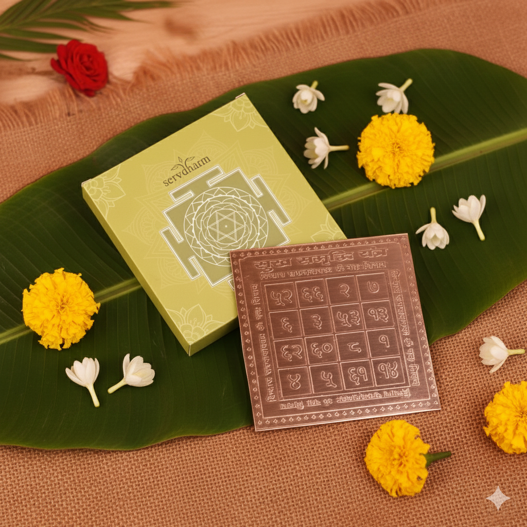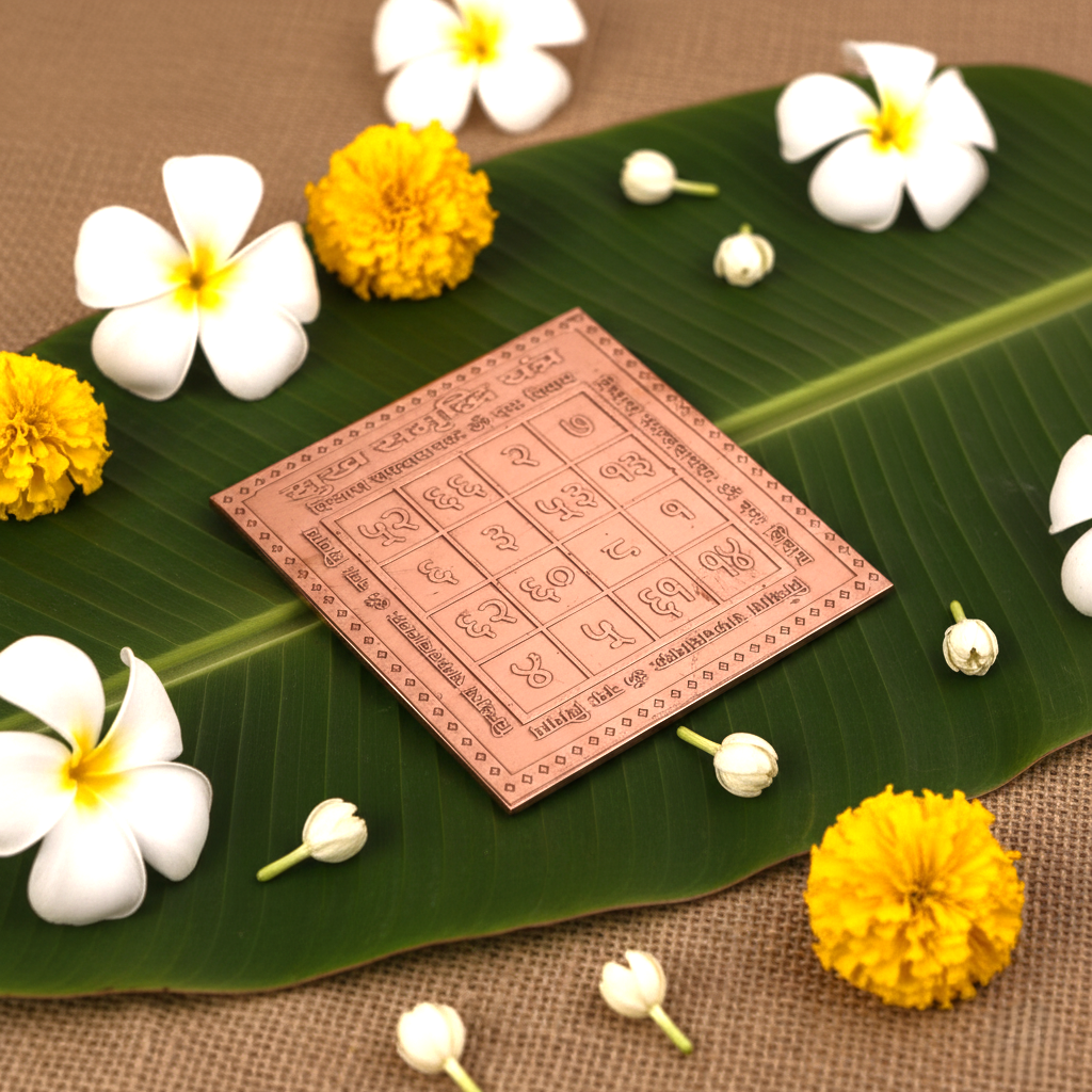 Copper Shri Sukh Samriddhi Yantra 4 x 4 inch
