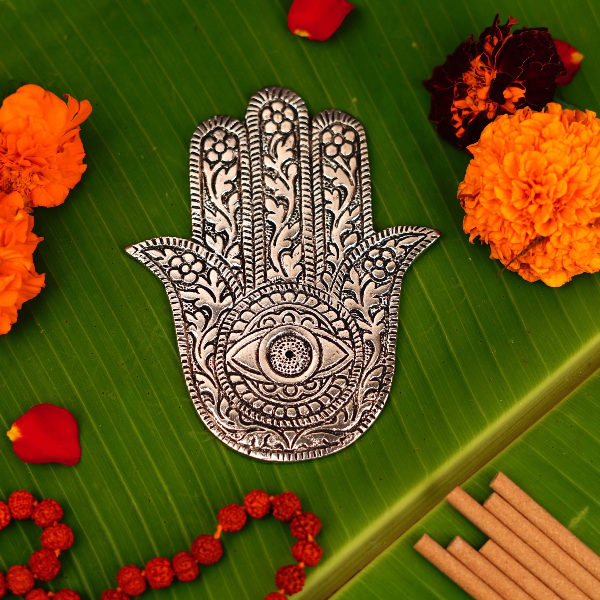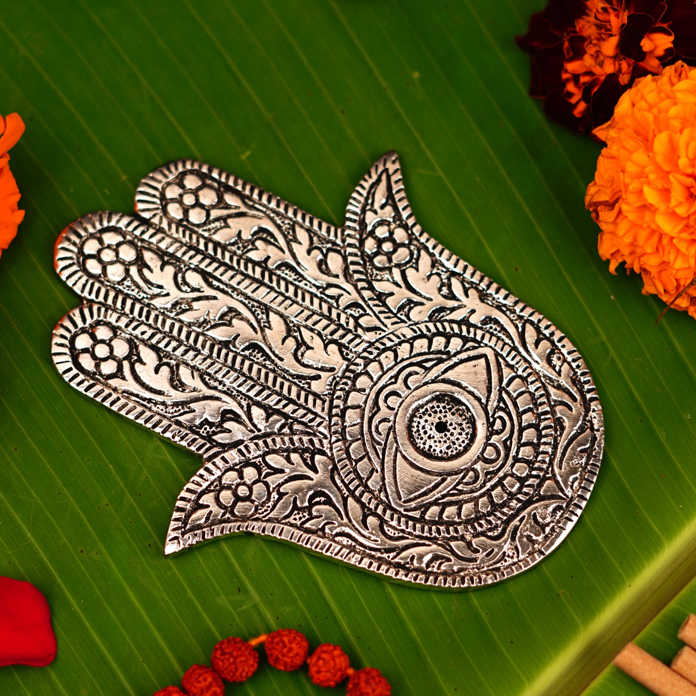 Silver Plated Hamsa Hand Agarbatti Holder 4.5 inch