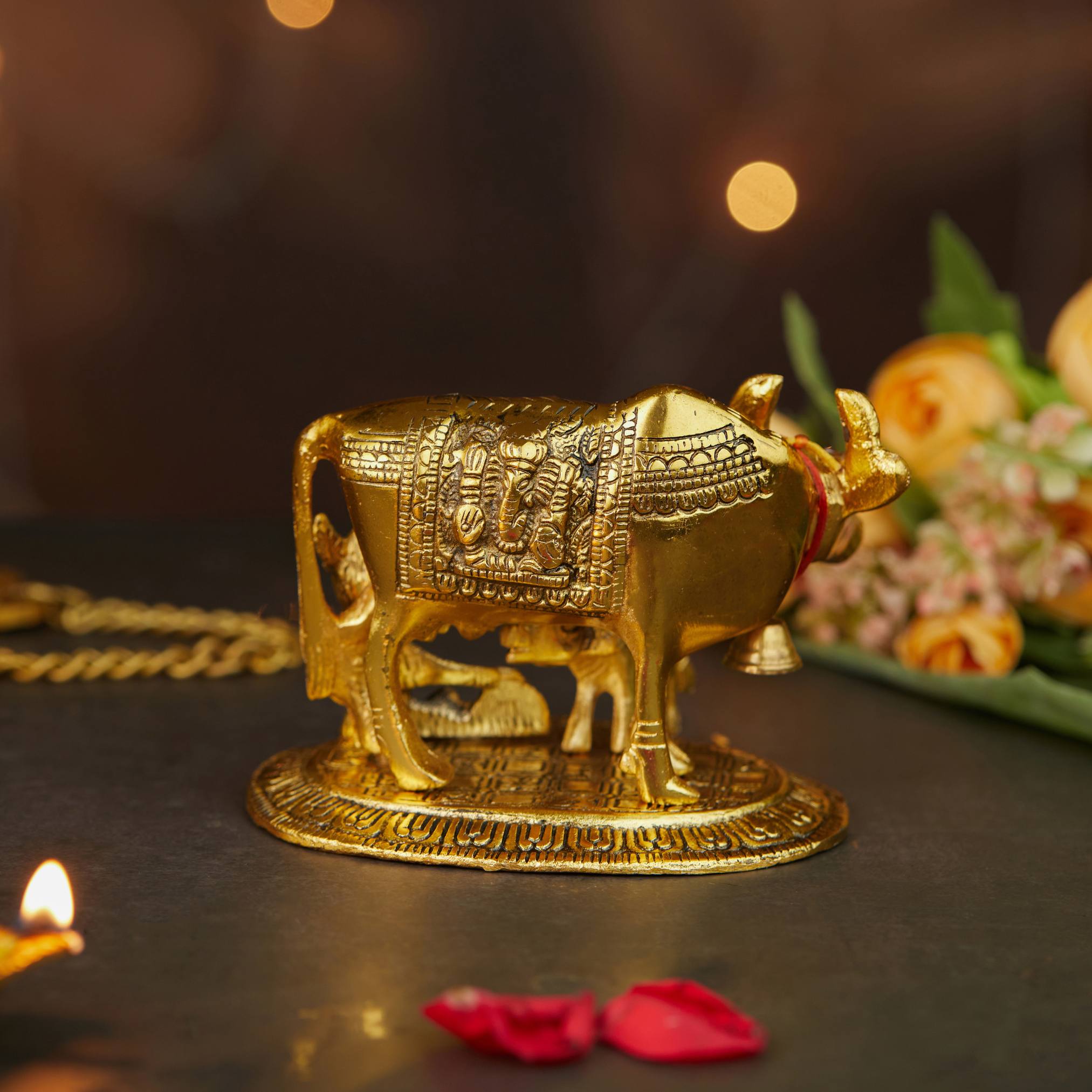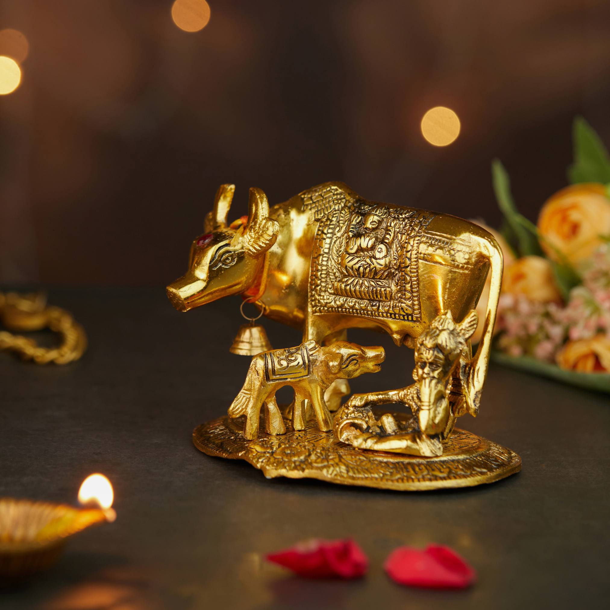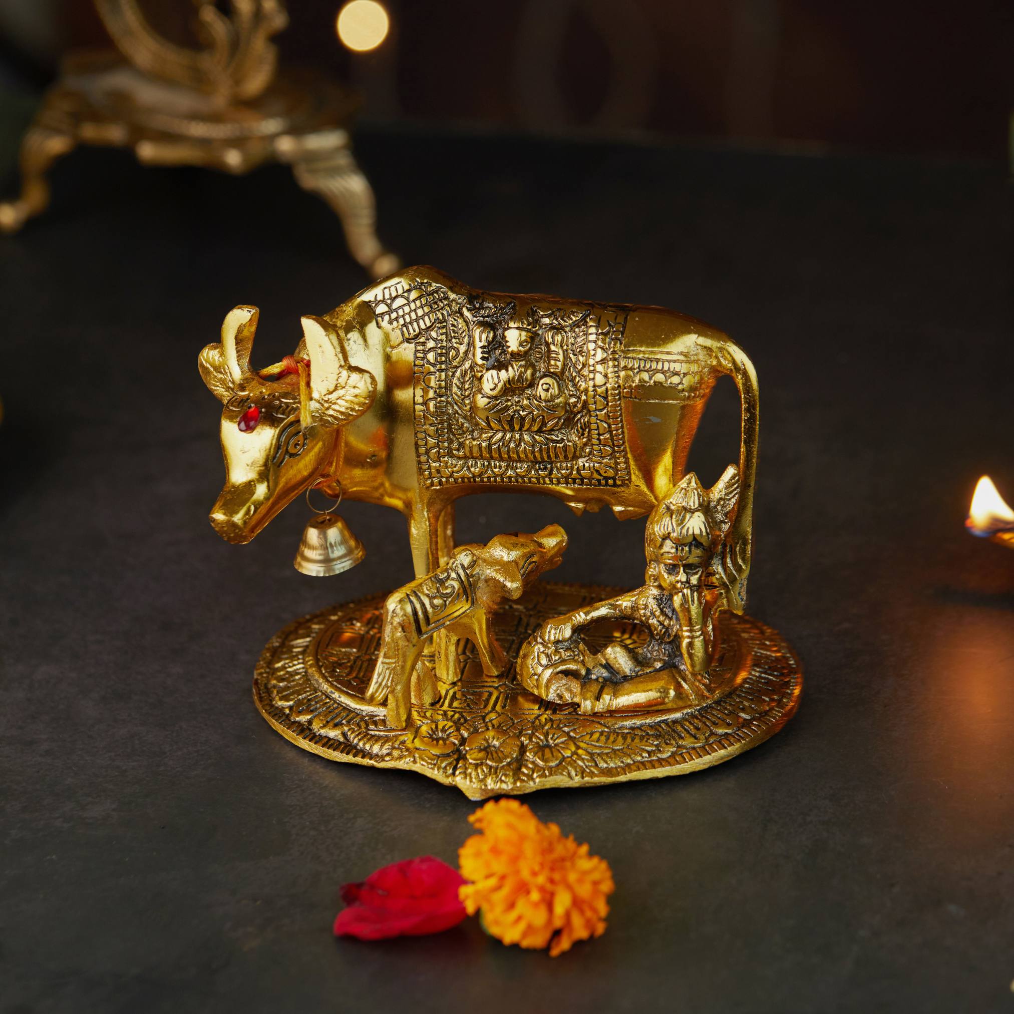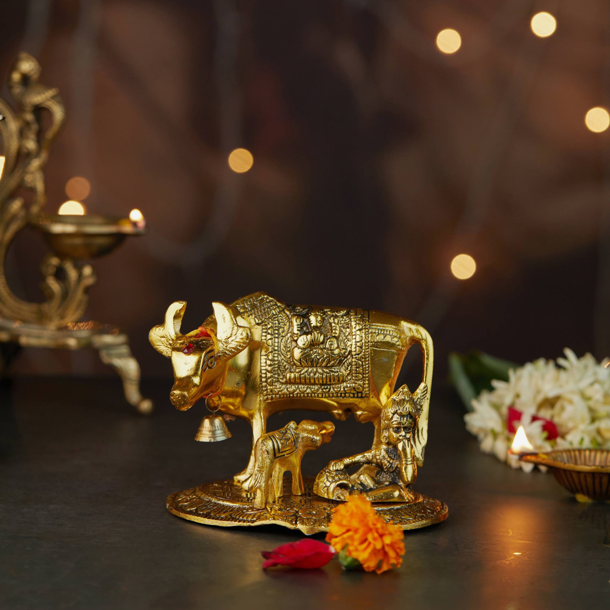 Kamdhenu and Calf Statue with Lord Krishna Idol | 400 g