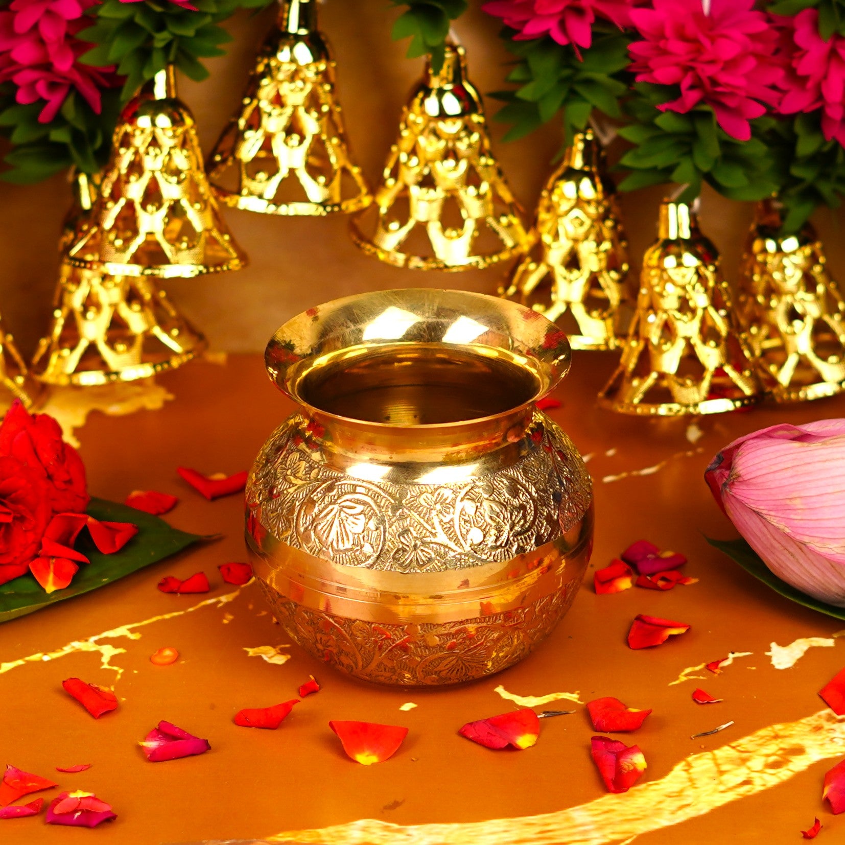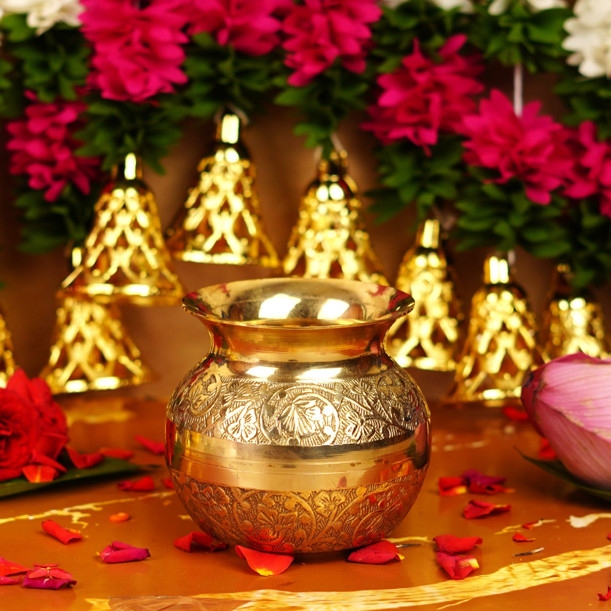 Pure Brass Embossed Pooja Lota 3.8 Inch 400 ml | 270 g