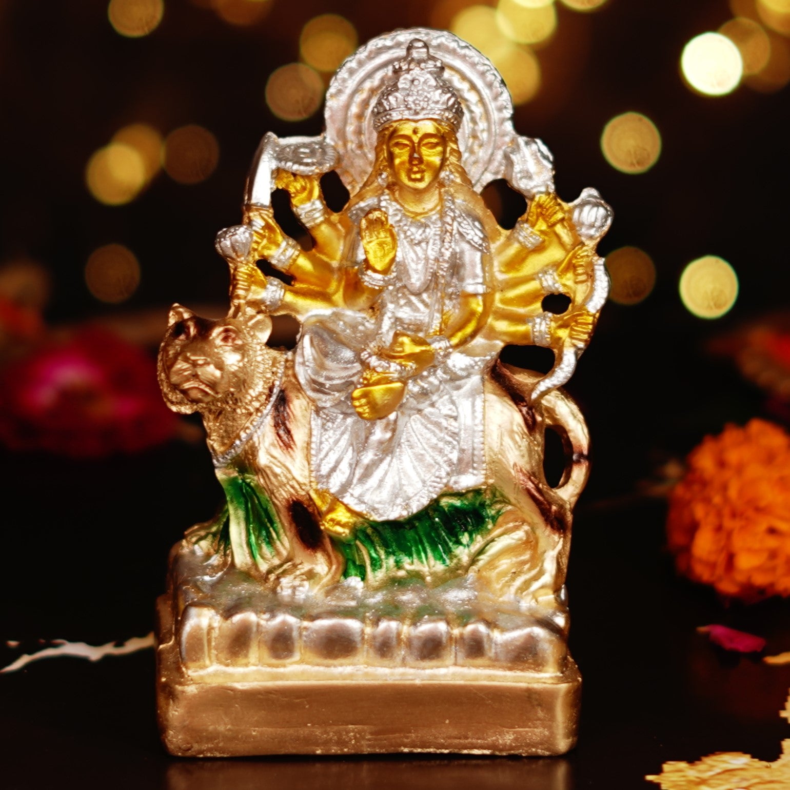 Silver and Gold Toned Maa Durga Resin Idol 5"