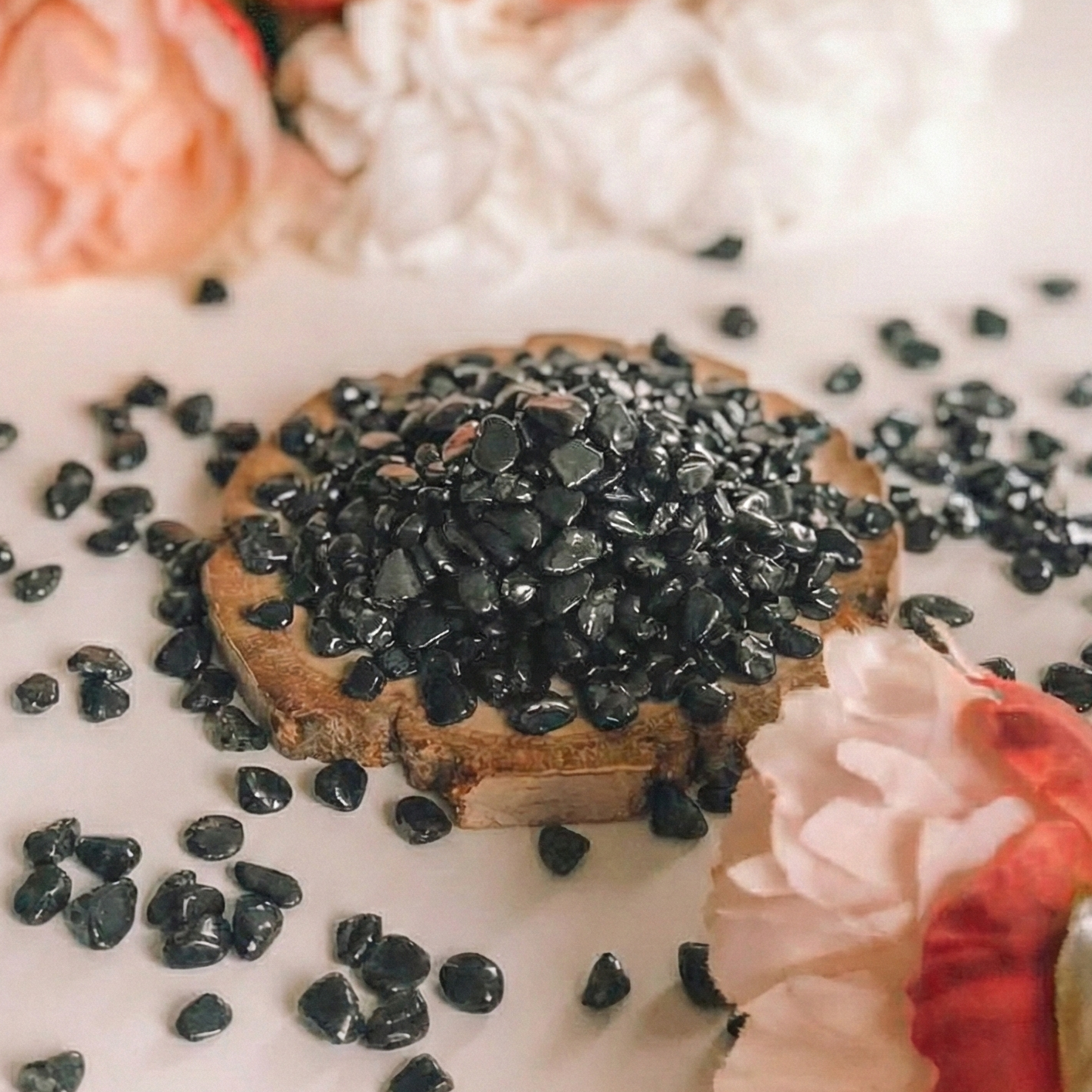 This is a powerful instrument for energetic protection and grounding. This jar contains pure Black Tourmaline chips, the quintessential "Stone of Protection," and is designed to serve as a physical anchor for your intention. It is an elegant tool for anyone seeking to clear negativity, shield their personal space, and maintain a sense of deep, foundational security.