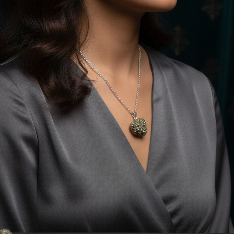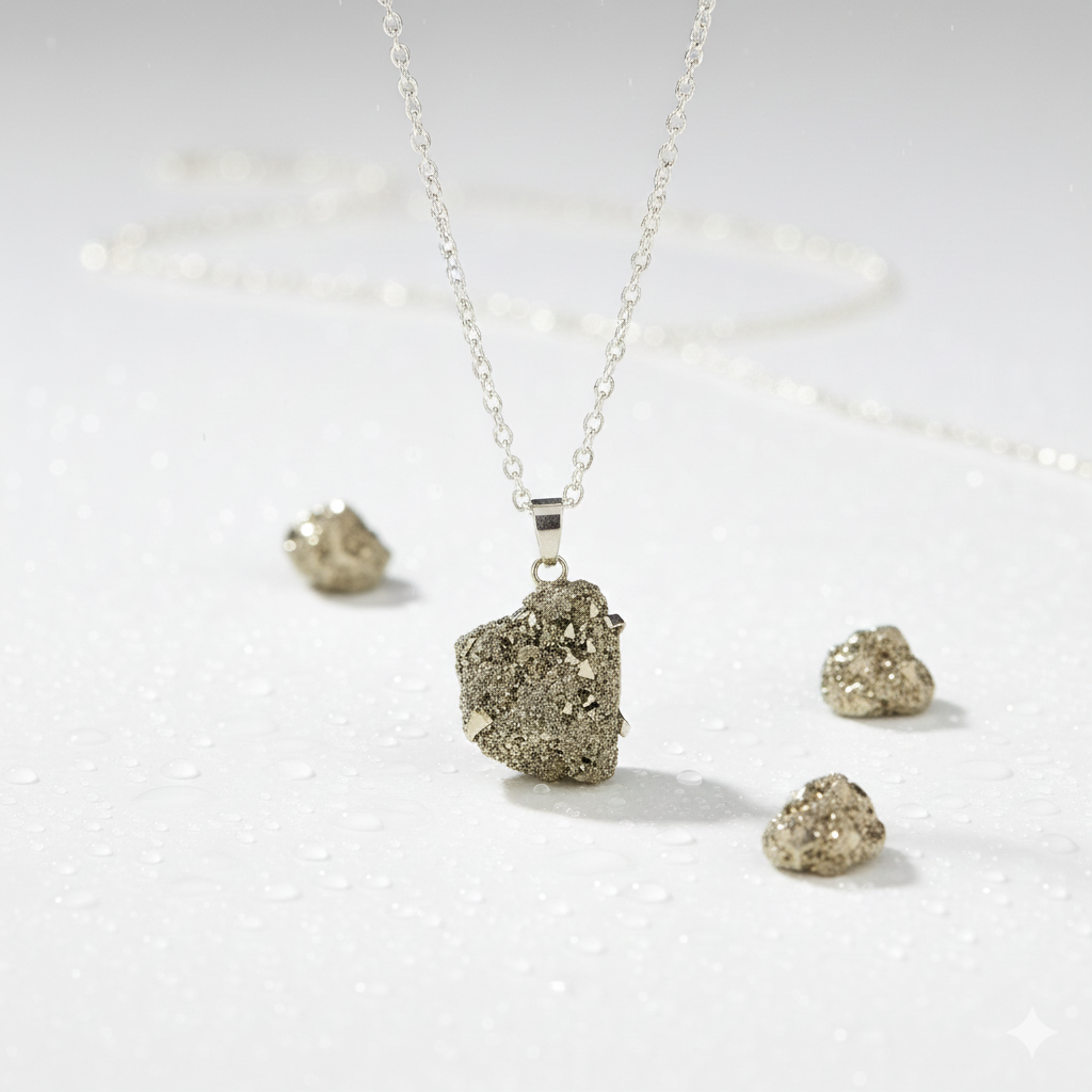 ● Natural Raw Form: Features an unpolished, raw Pyrite nugget. This organic form retains a powerful, earthy energy, and its unique, glittering structure makes each pendant a one-of-a-kind piece.