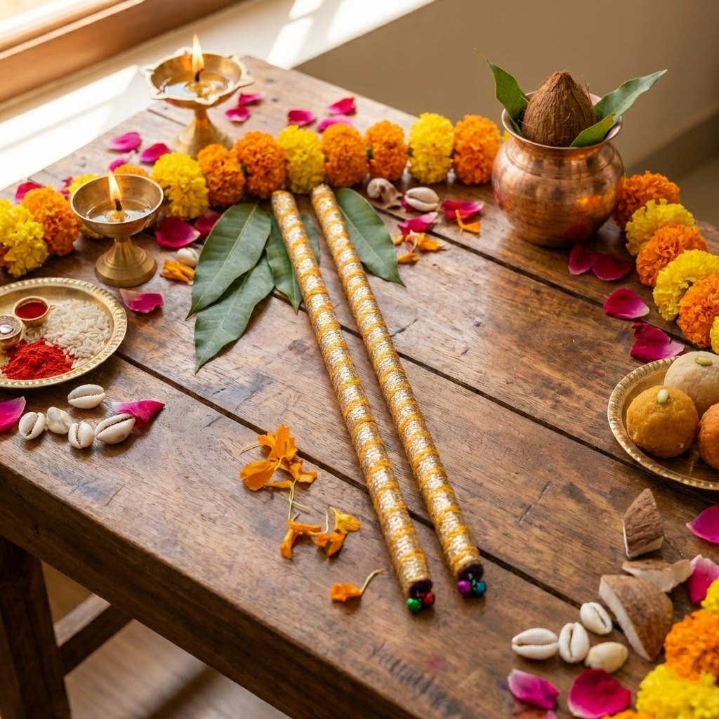 Golden Yellow Festive Navratri Dandiya Sticks (1 Pair)