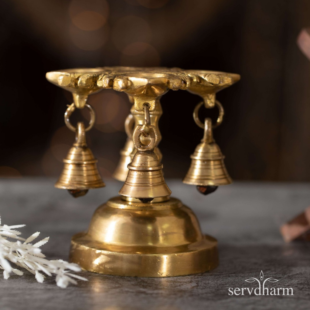 Pure Brass Diya With Bells 4.3 Inch | 1186 grams