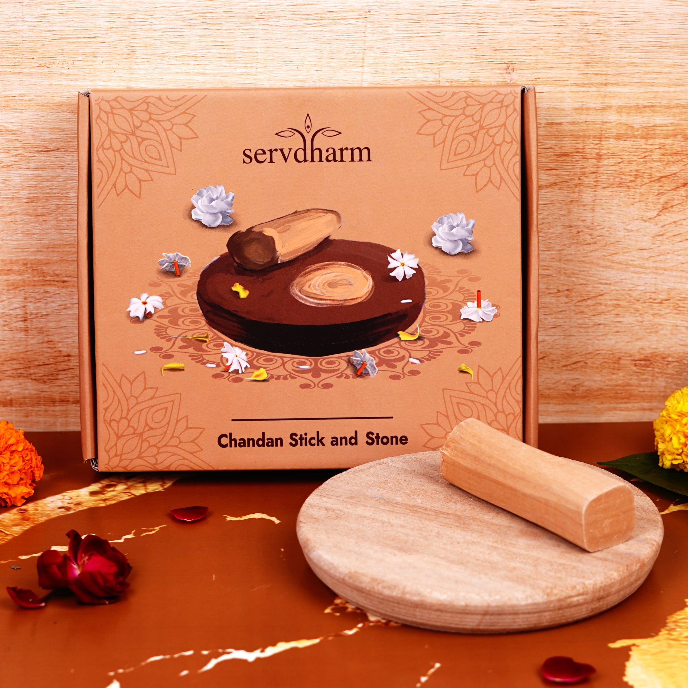 Chandan Stick and Stone | Pure Sandalwood Stick, 6" Rubbing Stone