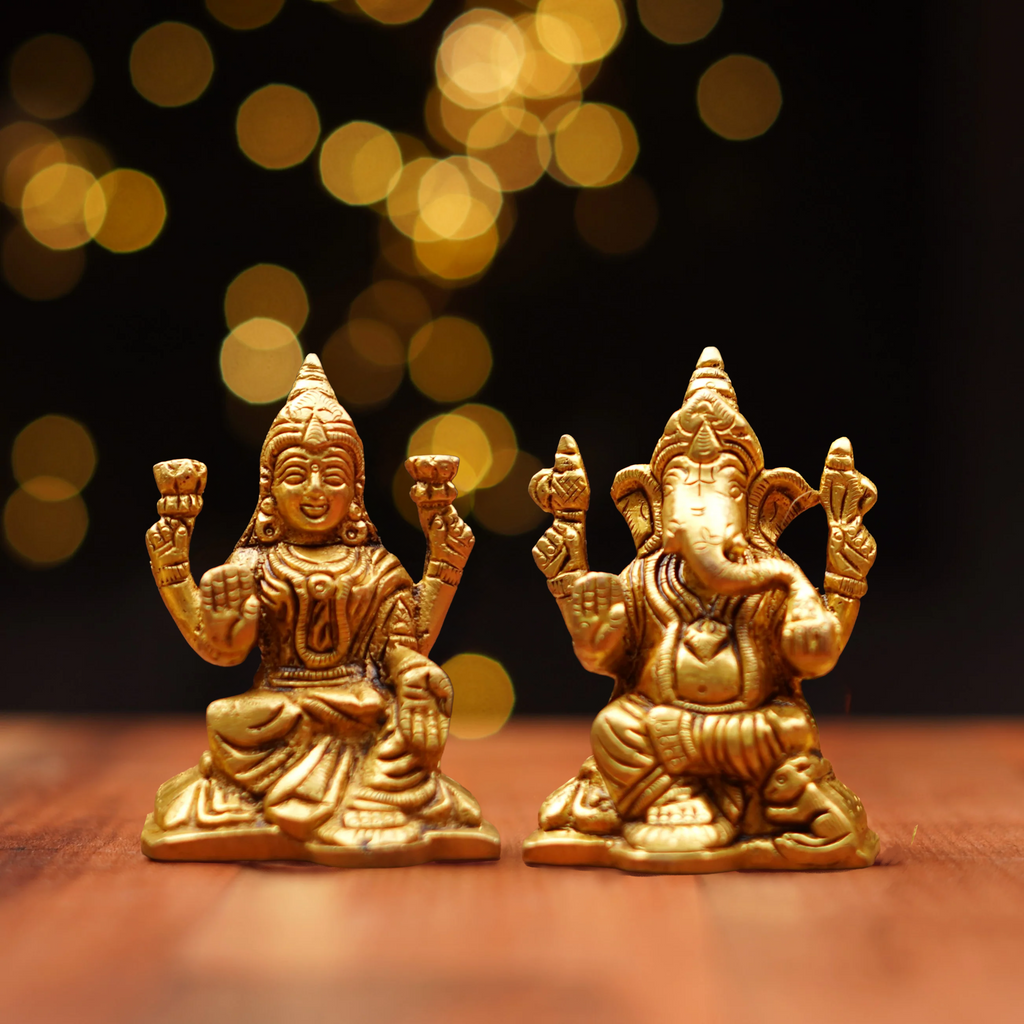 Brass Lakshmi Ganesh Idol Set 3 Inch
