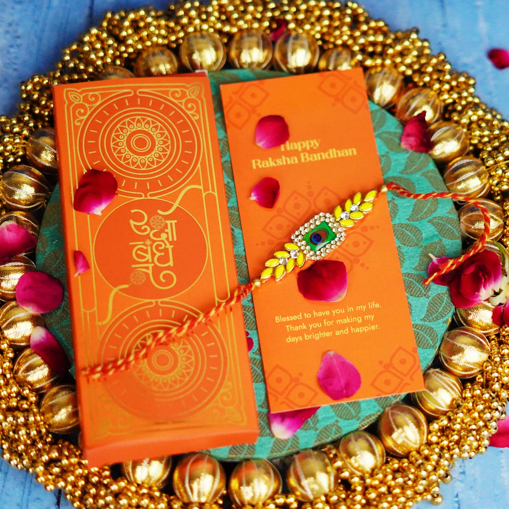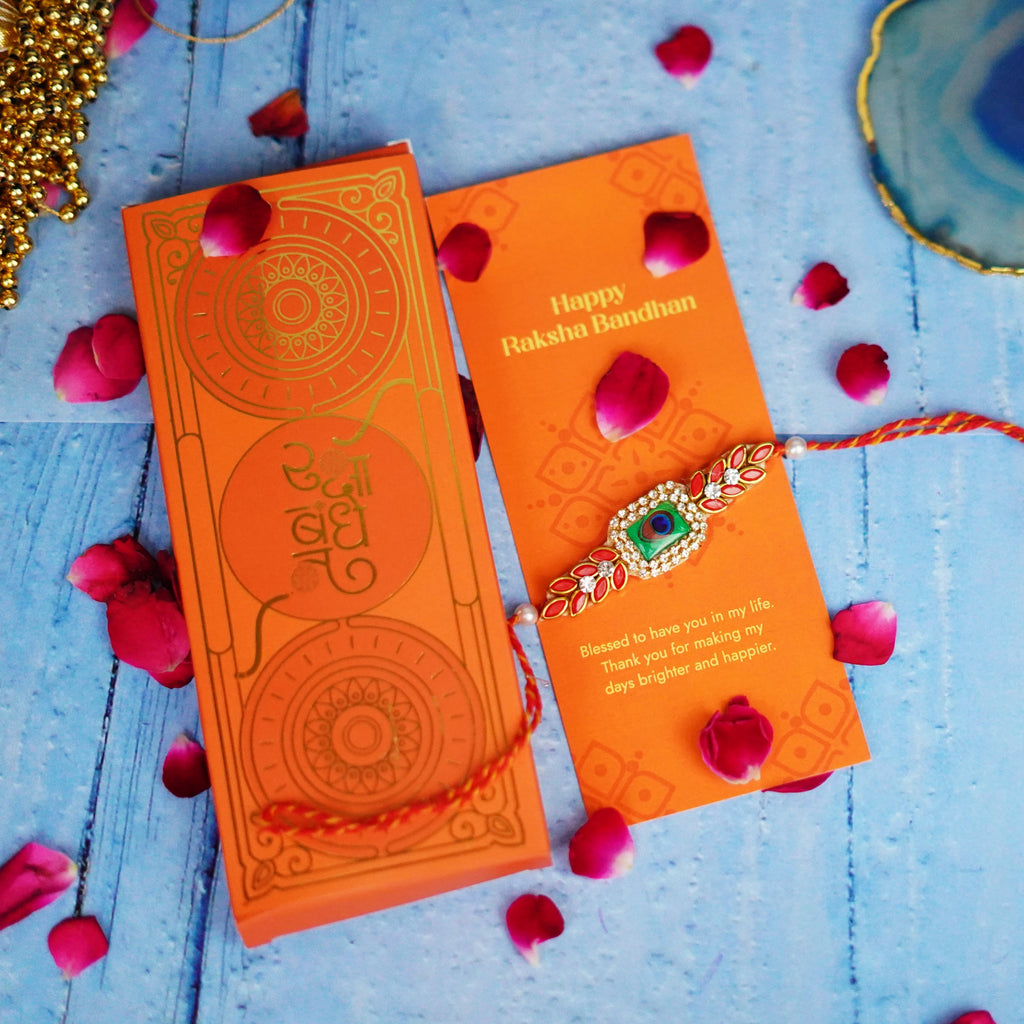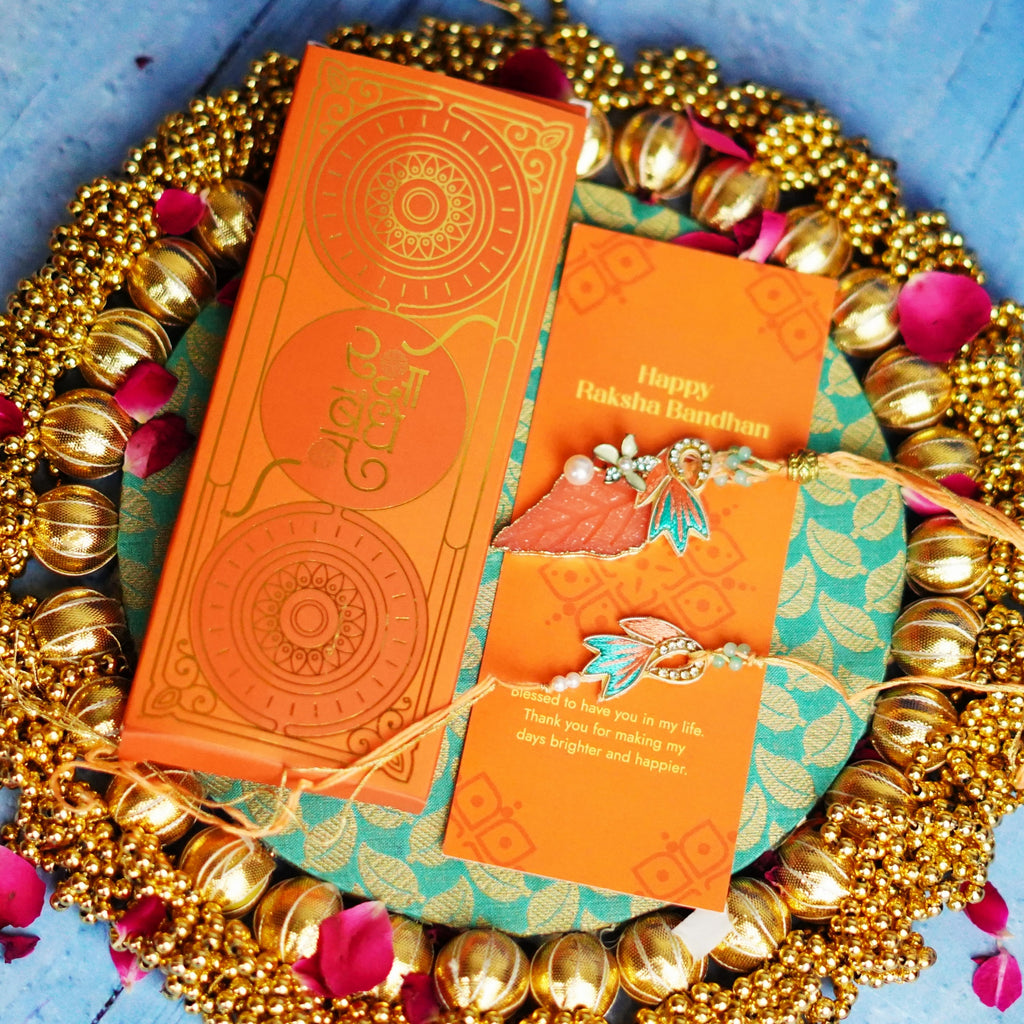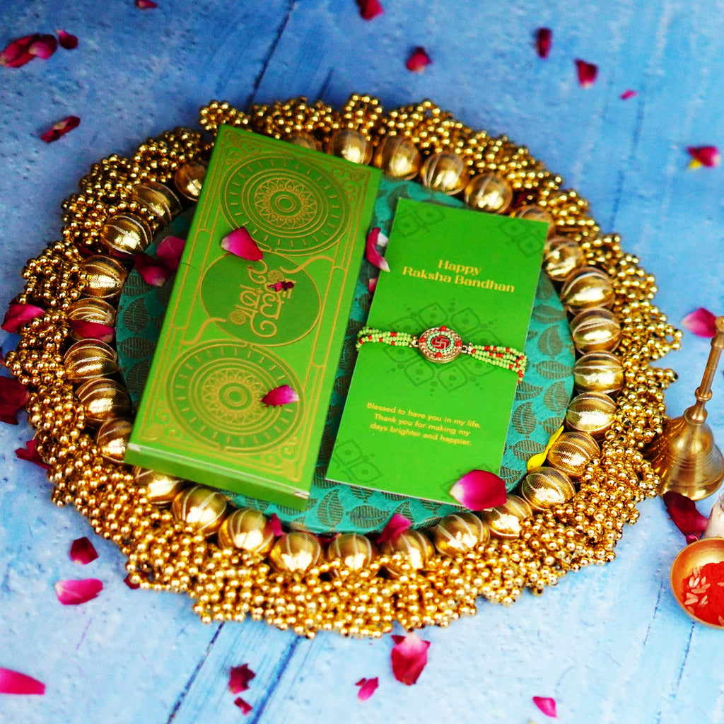 Peachy Leaf Thread Work Lumba Rakhi Combo