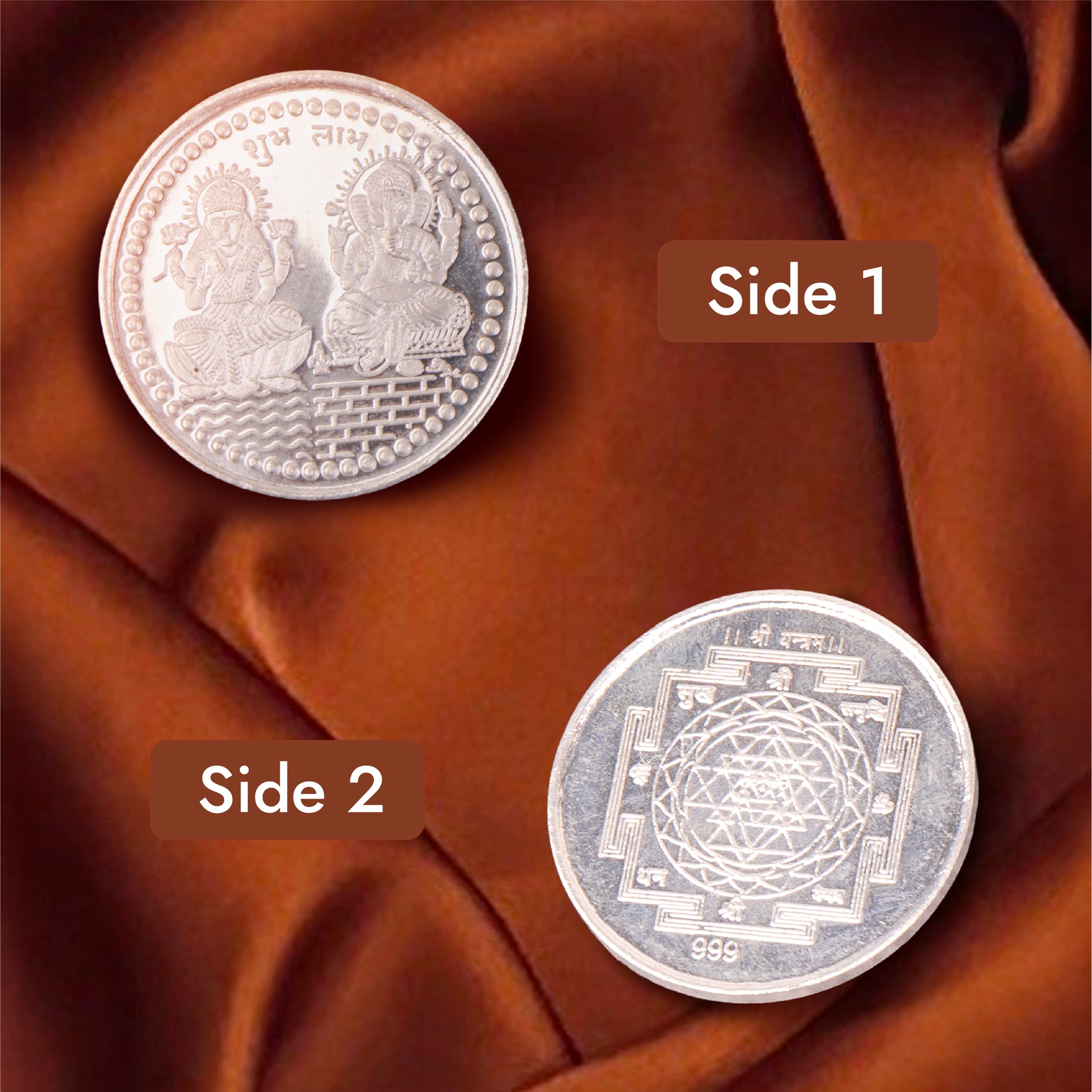 999 Silver Plated Lakshmi Ganesh With Shree Yantra Coin