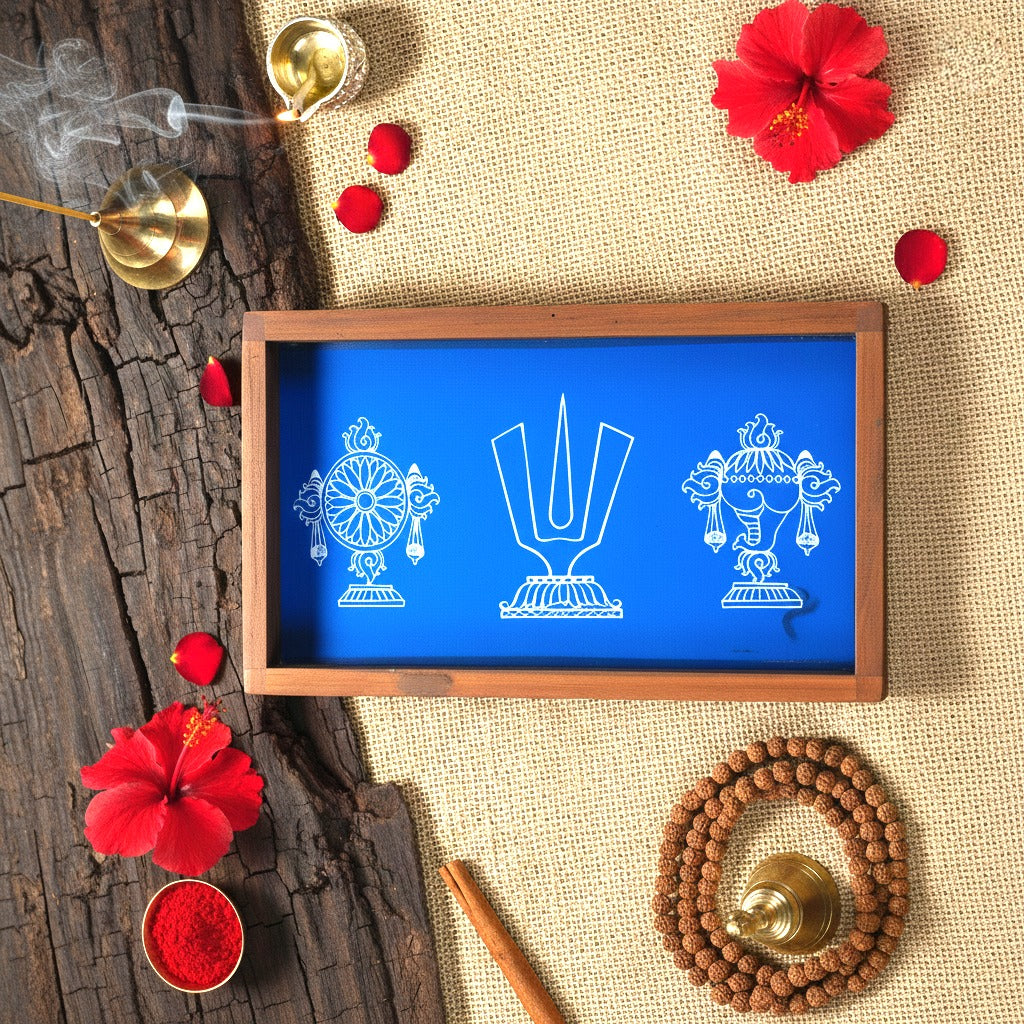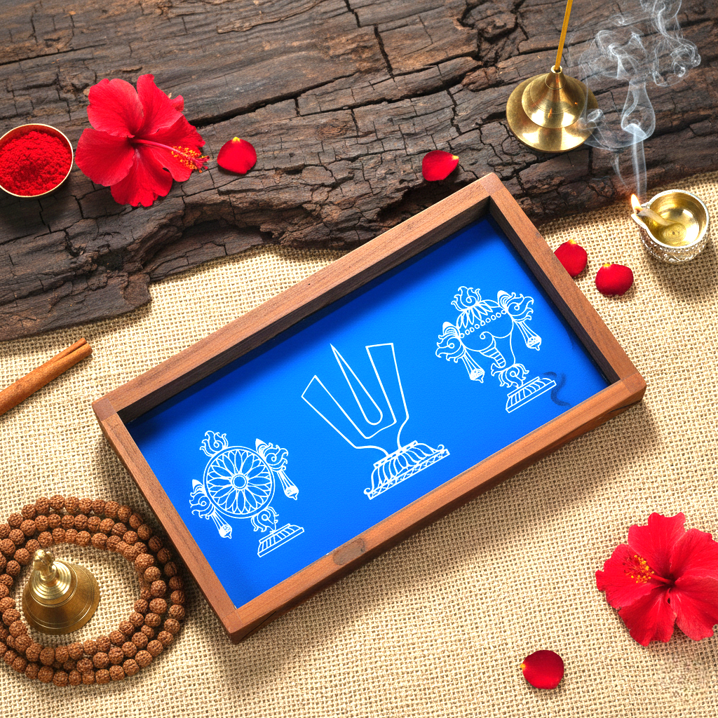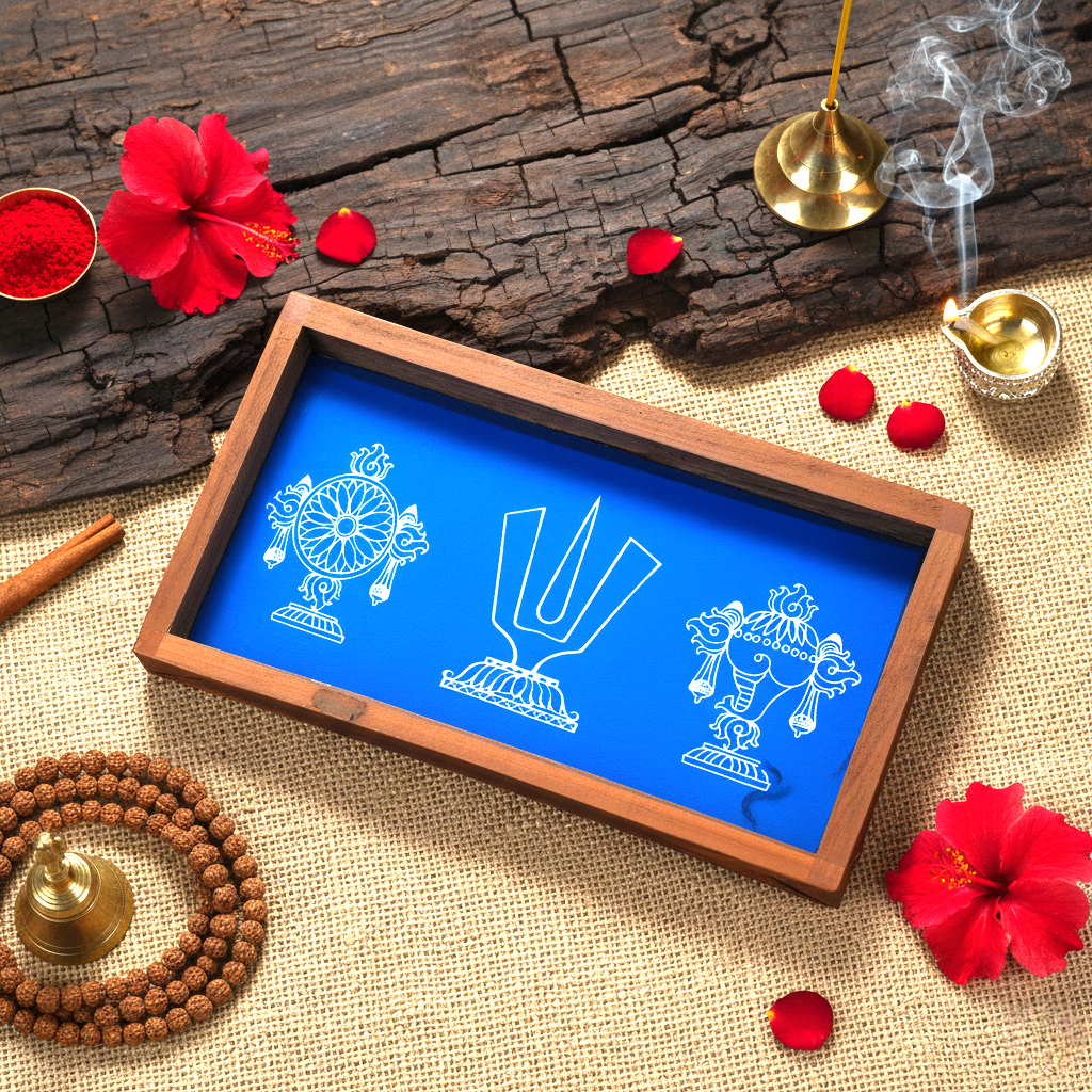 Shankh Chakra Namah Wooden Kolam Stencil 9 x 5 Inch