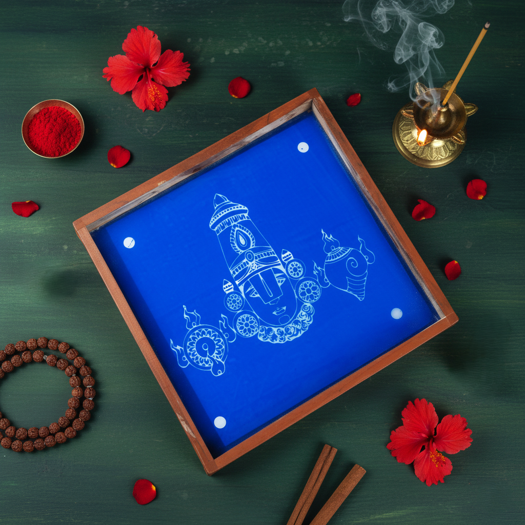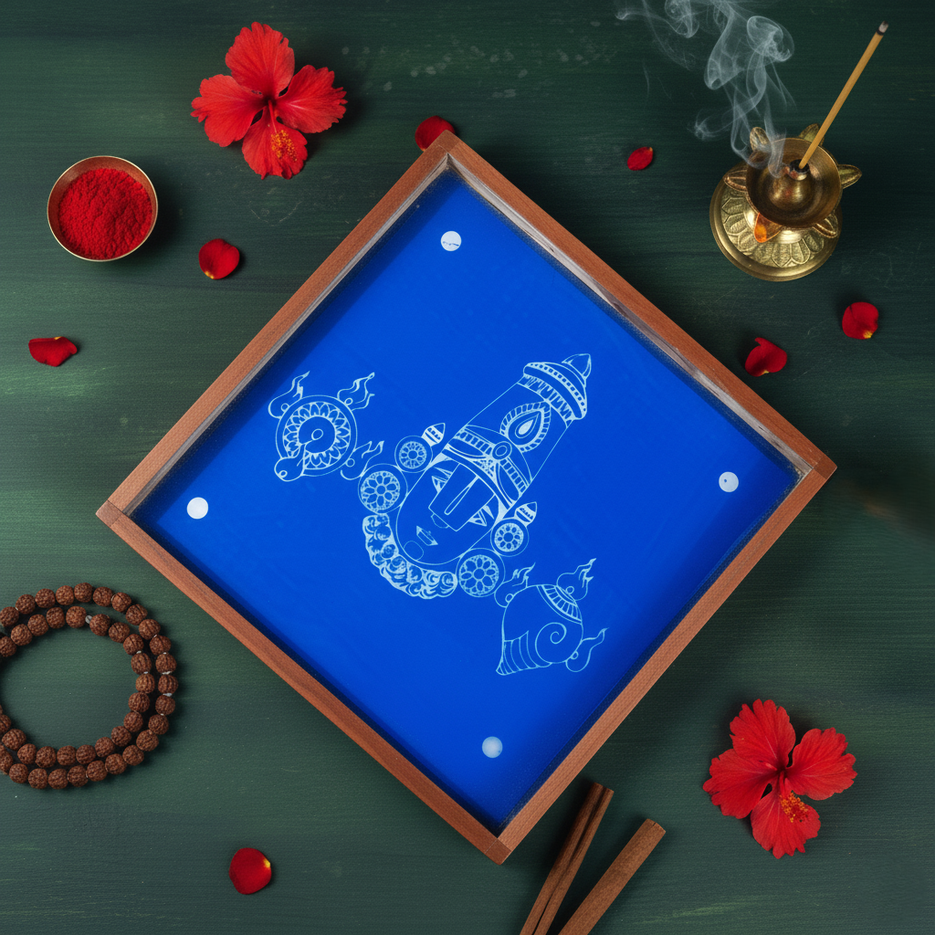 Shankh Chakra Namaha Wooden Kolam Stencil 10 x 10 Inch